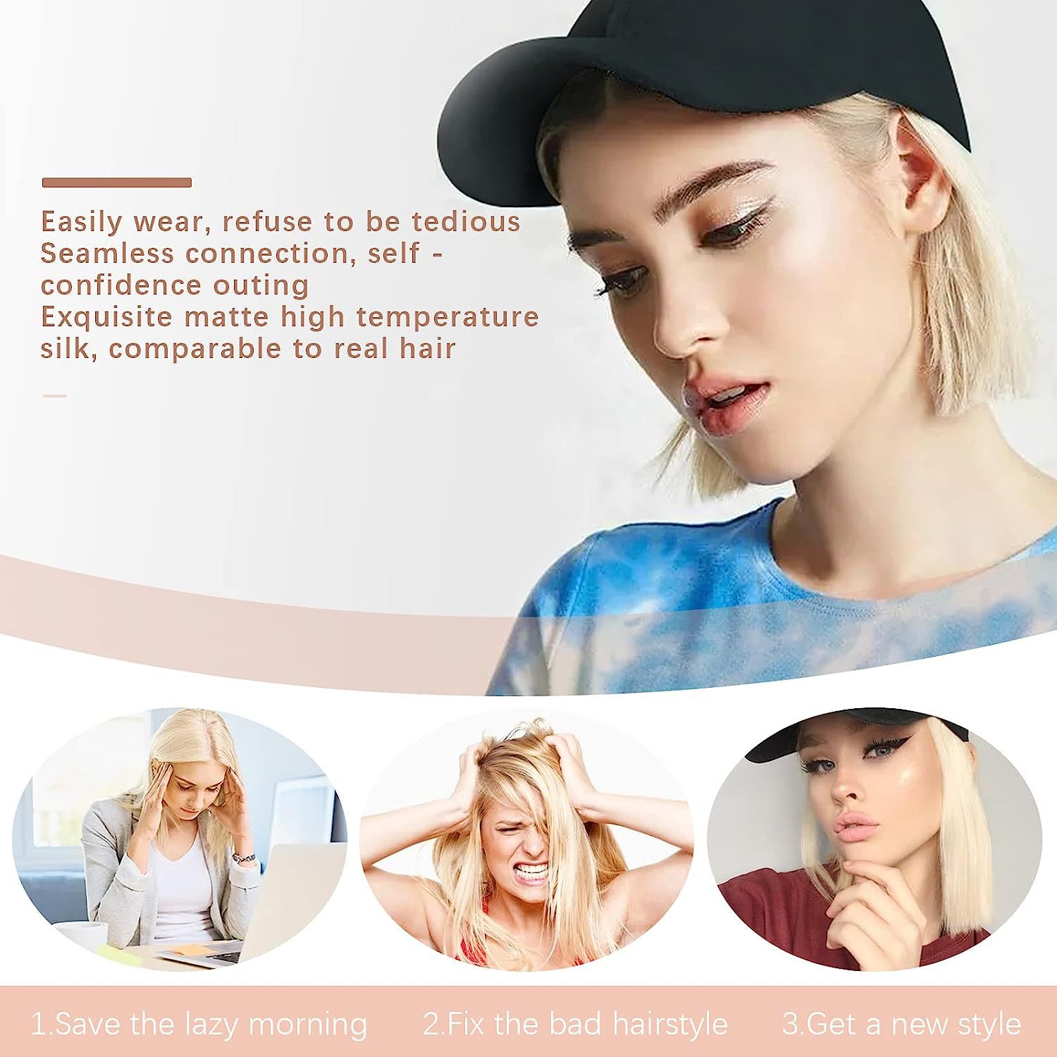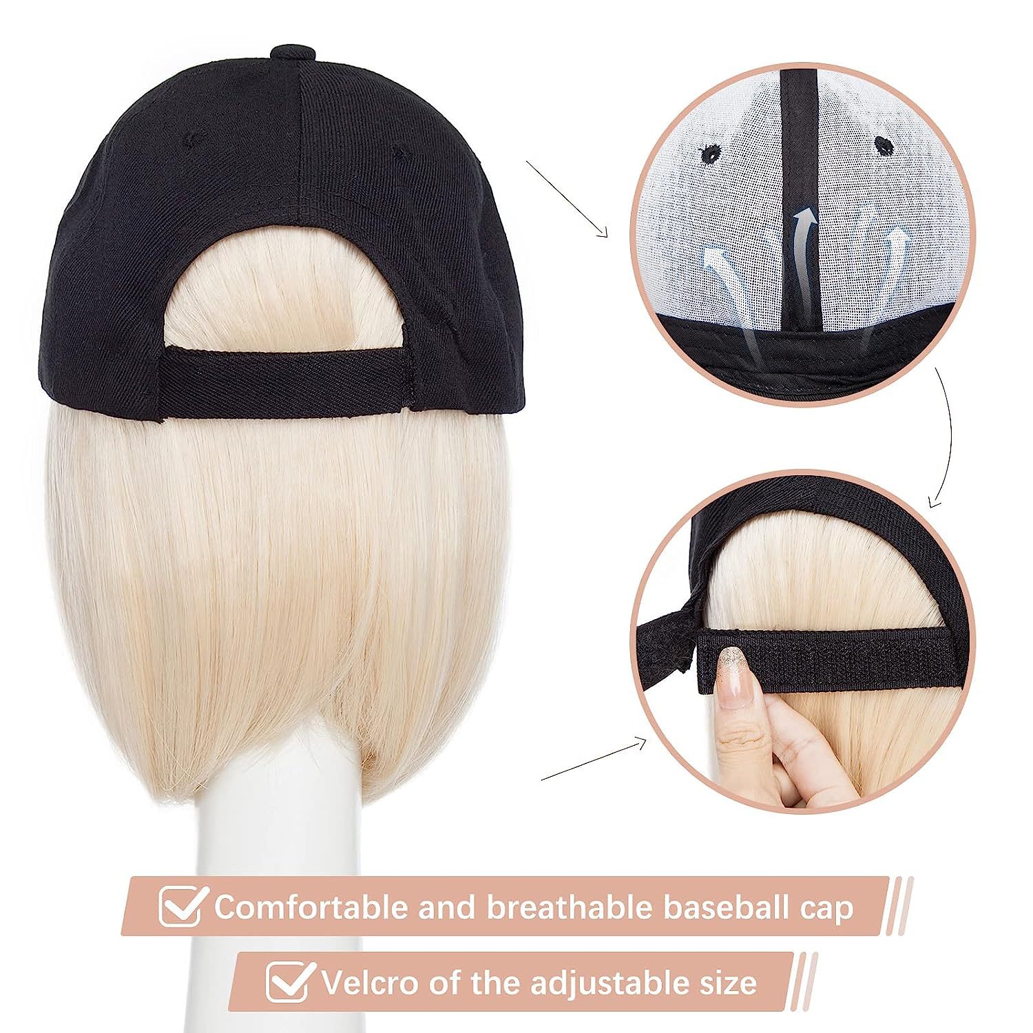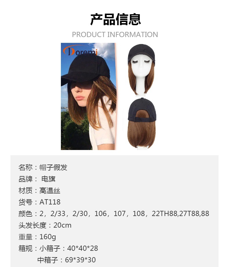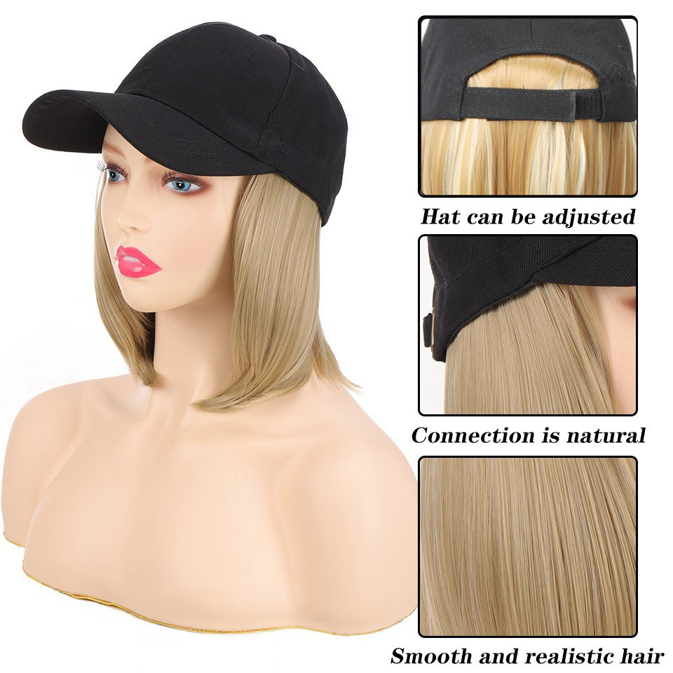 Transfronterizo europeo y americano de primavera y verano lienzo sol sombrero peluca Pelo Corto enarbolado gorra peluca pelo corto recto enarbolado gorra de béisbol