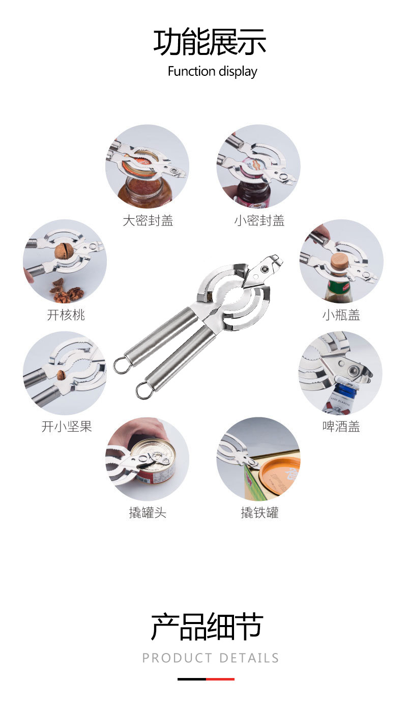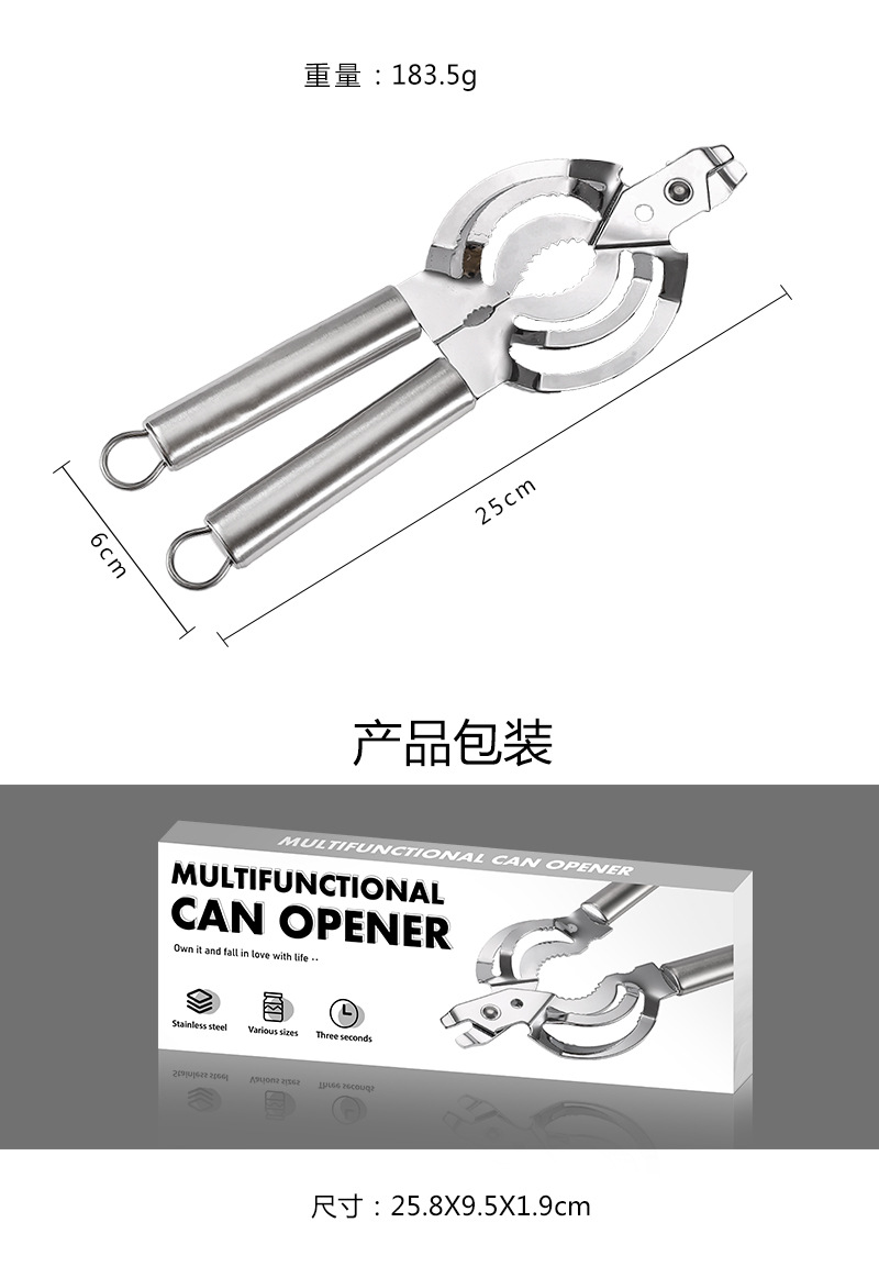 Amazon de acero inoxidable fuerte cocina hogar puede abridor de botellas multifunción puede abridor de tapa antideslizante