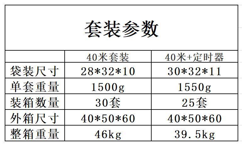 | Especificaciones | Juego de riego de 40 m,Temporizador de juego de riego de 40 m |