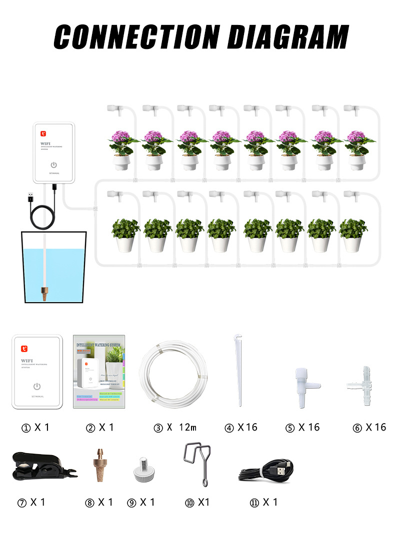 Wifi Dispositivo de riego automático inteligente temporización de riego artefacto perezoso olla suculenta casa interior sistema de riego por goteo