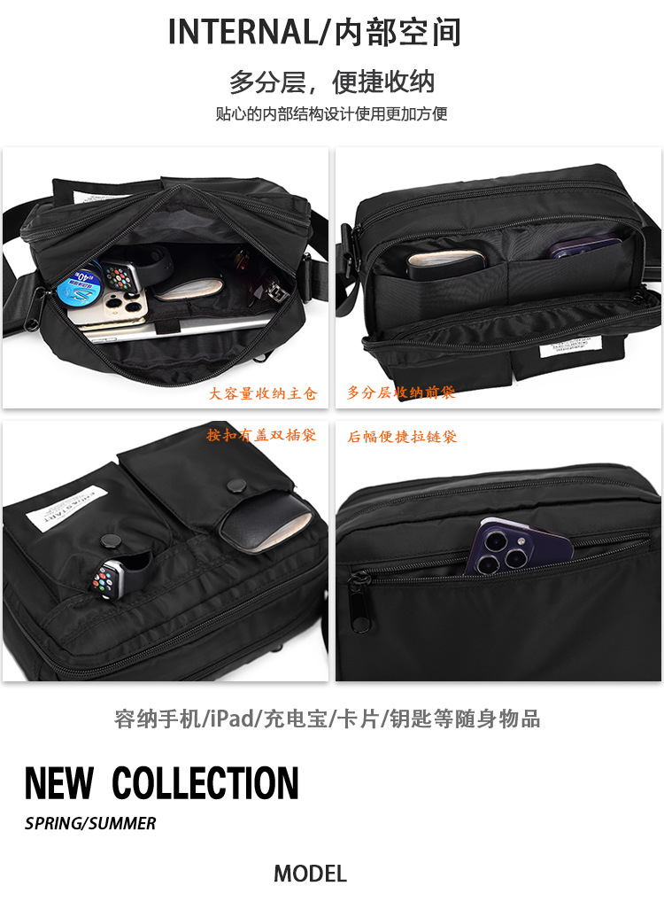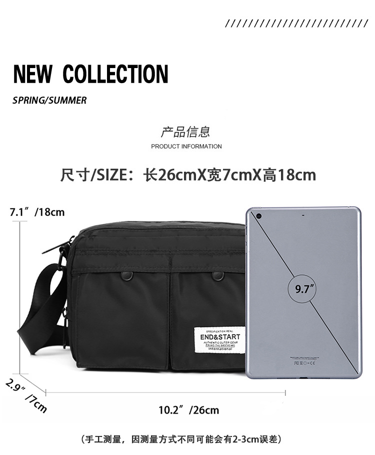 Bolso de hombro impermeable de estilo japonés de moda casual simple clásico crossbody bolsa de mensajero de los hombres relajados bolsa de viaje de múltiples compartimentos