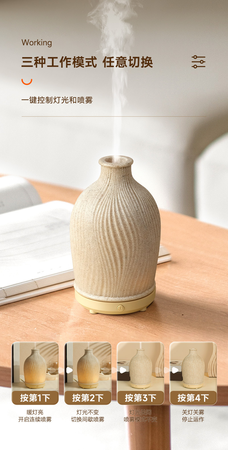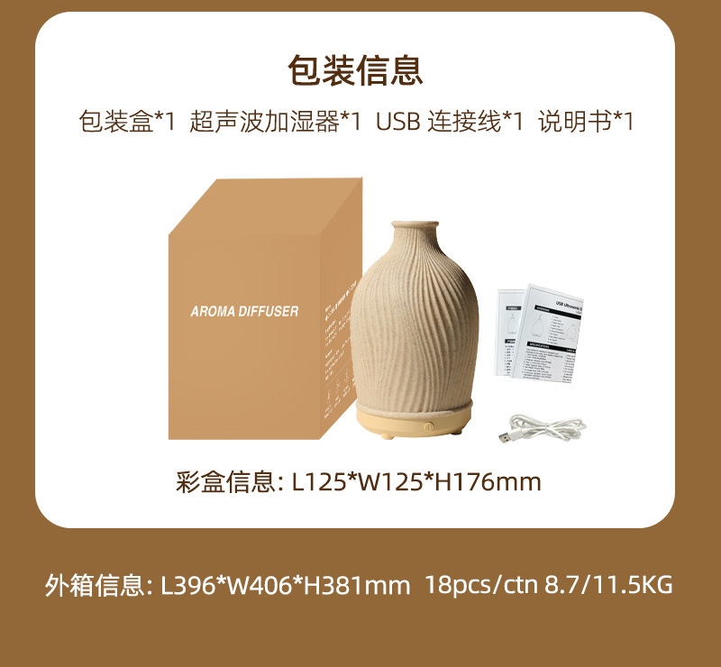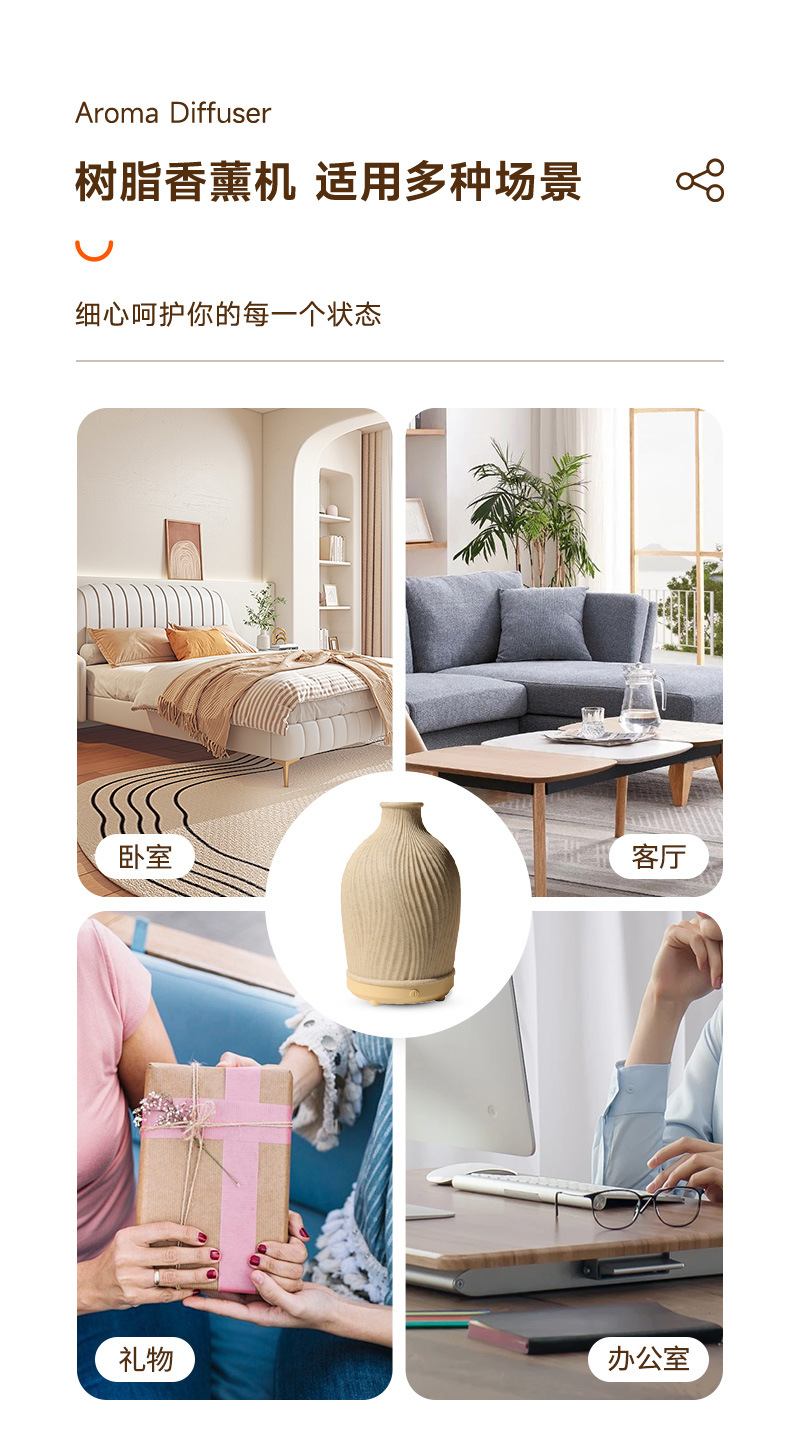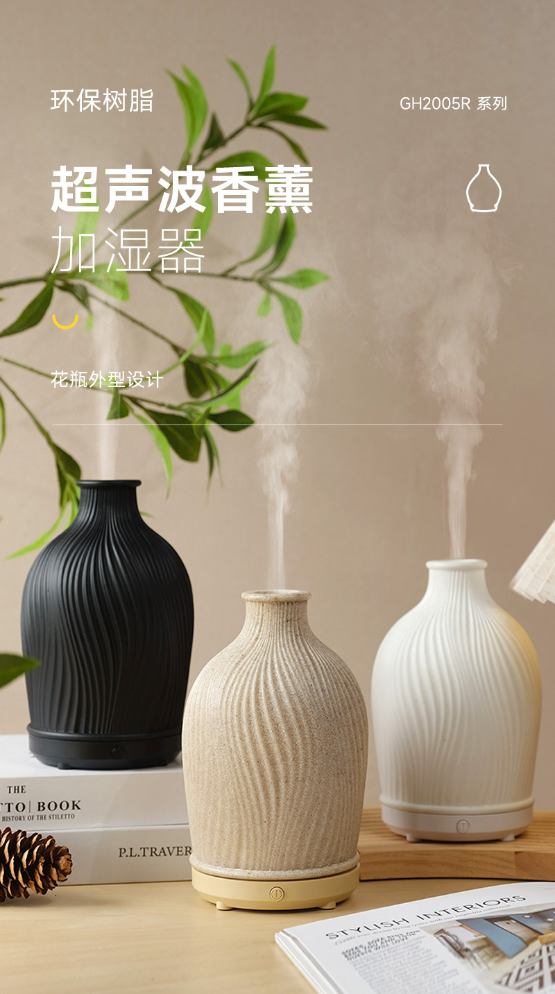 Vaso de viento simple transfronterizo Humidificador de aromaterapia de hotel Humidificador silencioso de aire ultrasónico de resina para el hogar