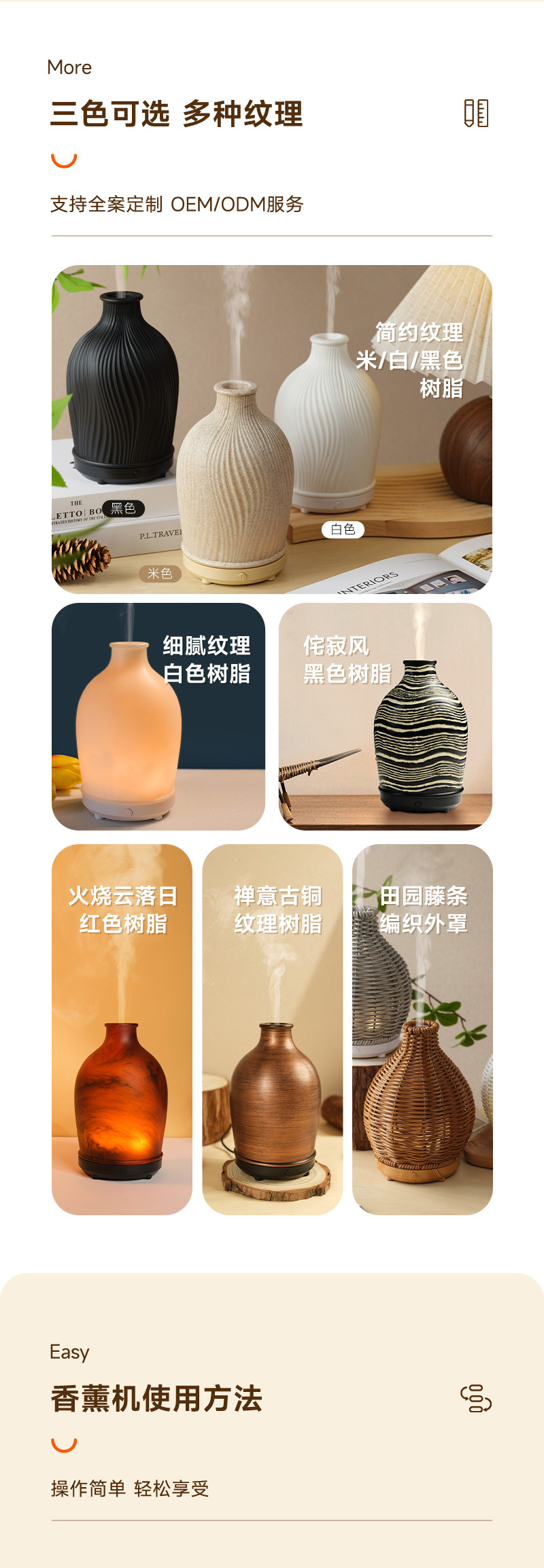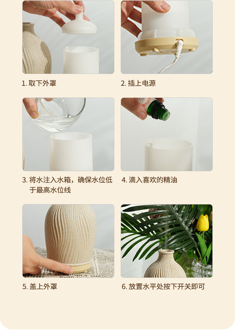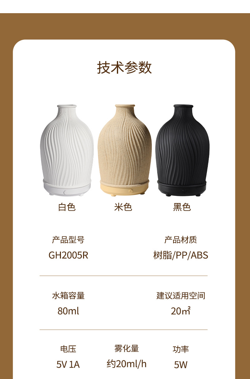 Vaso de viento simple transfronterizo Humidificador de aromaterapia de hotel Humidificador silencioso de aire ultrasónico de resina para el hogar