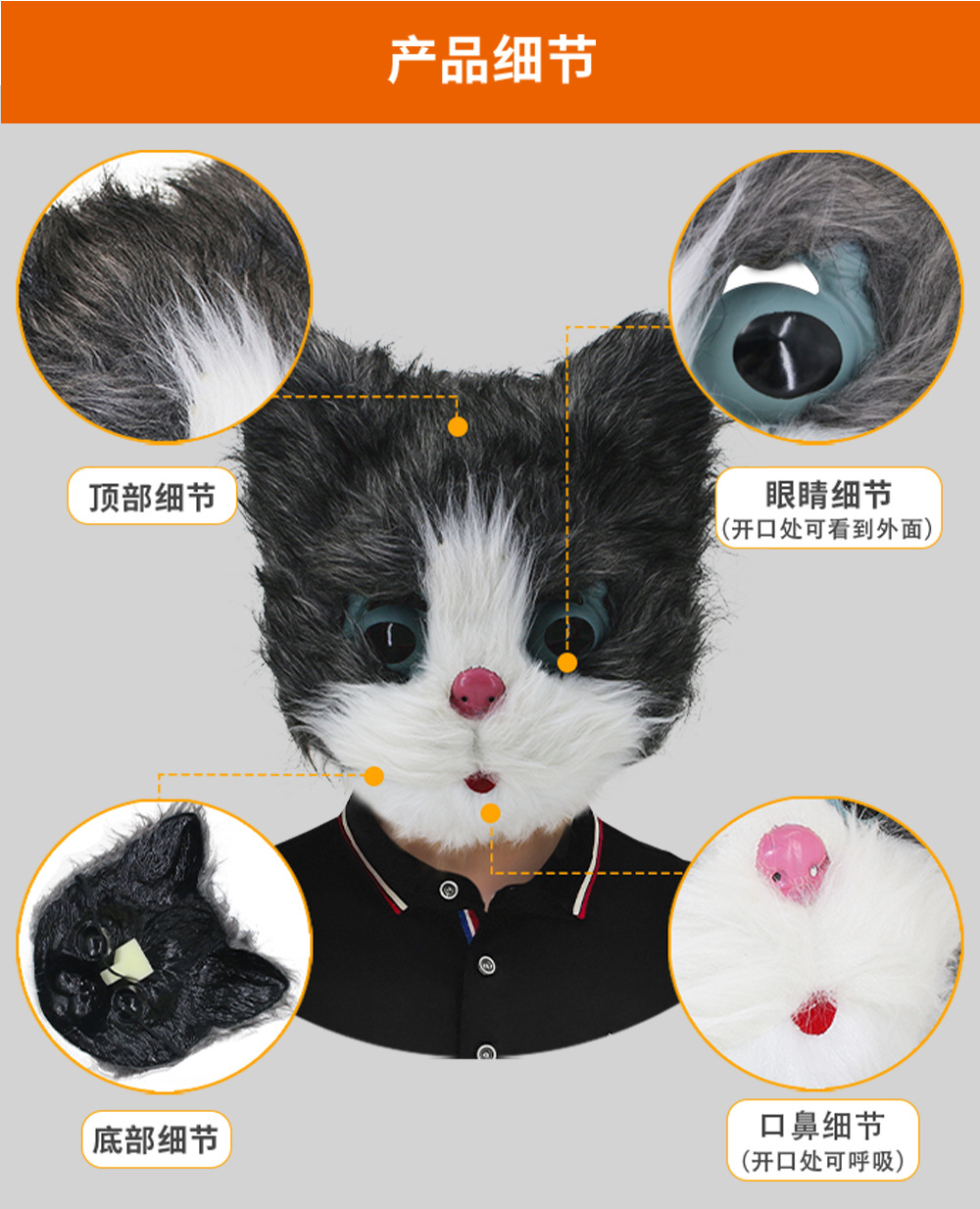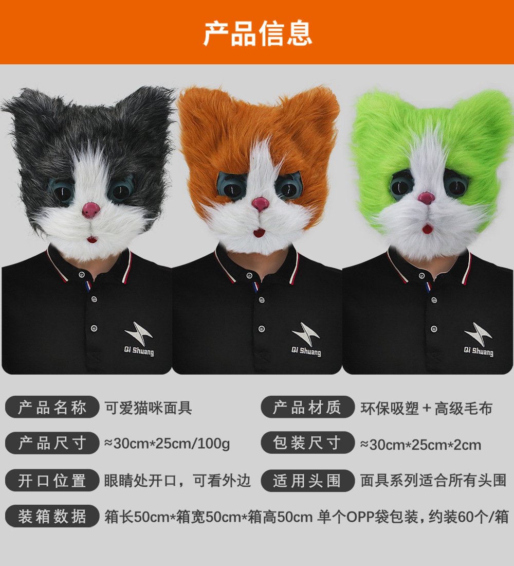 Lindo gatito animal máscara tocado mascarada divertida máscara de dibujos animados accesorios de presentación de fiesta de Halloween