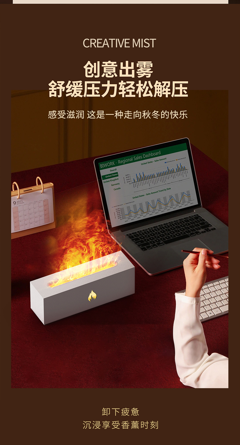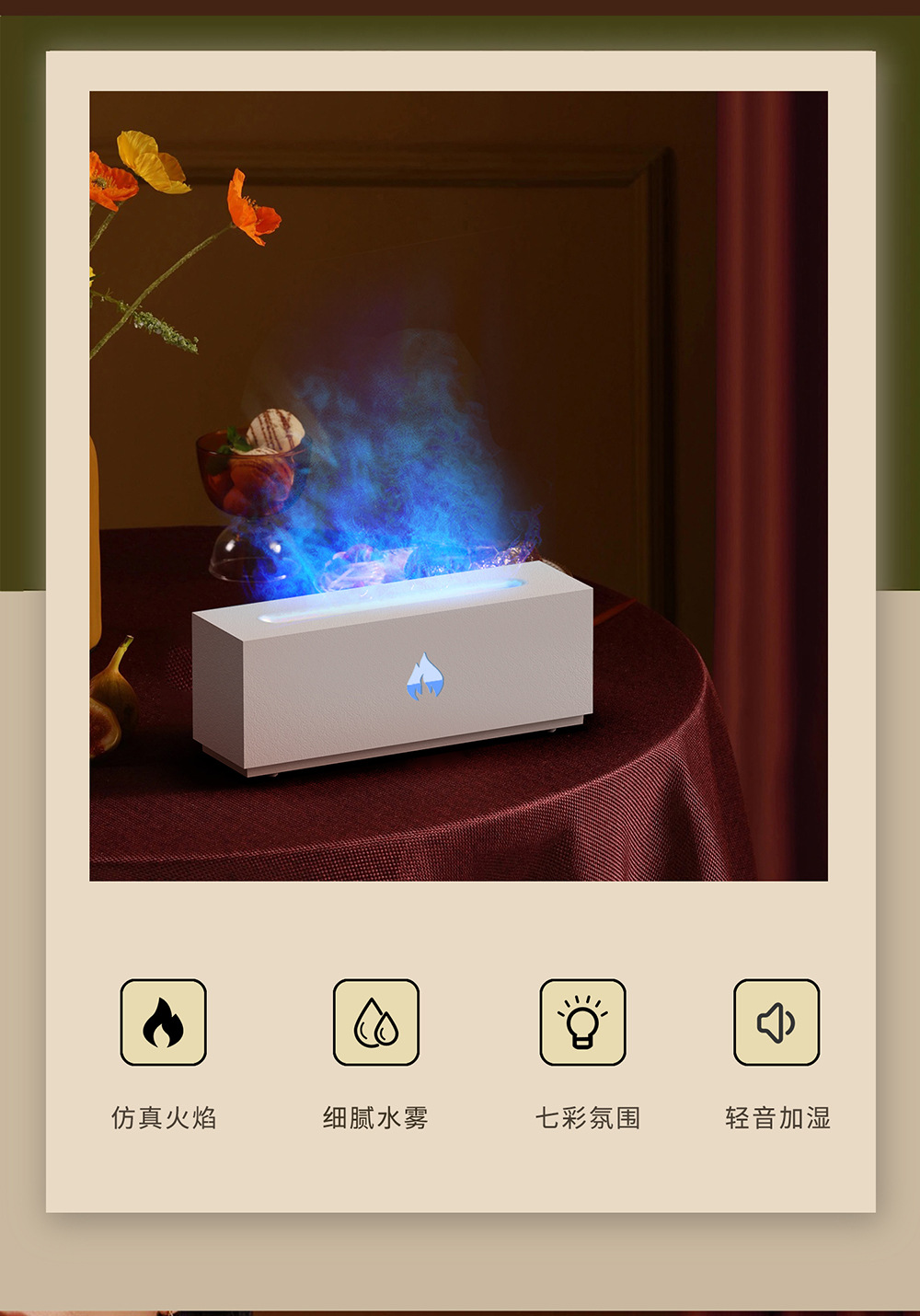 Nuevo largo simulación llama máquina de aromaterapia 3D chimenea aerosol grande interior fragante colorido llama humidificador de aire