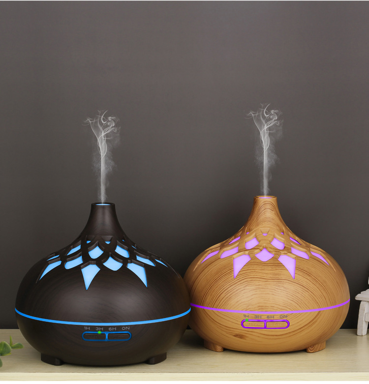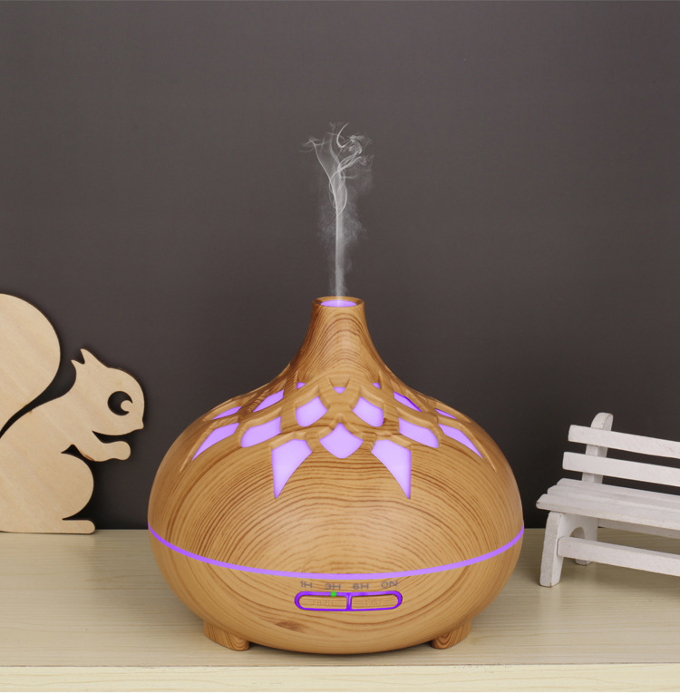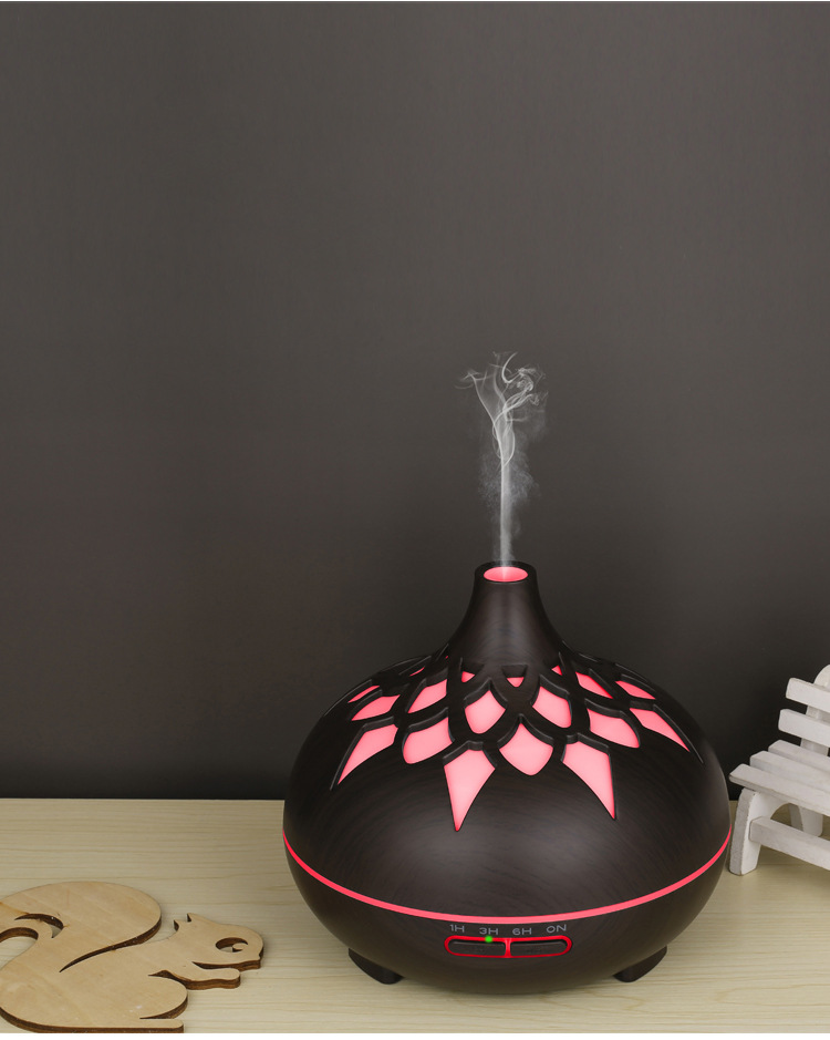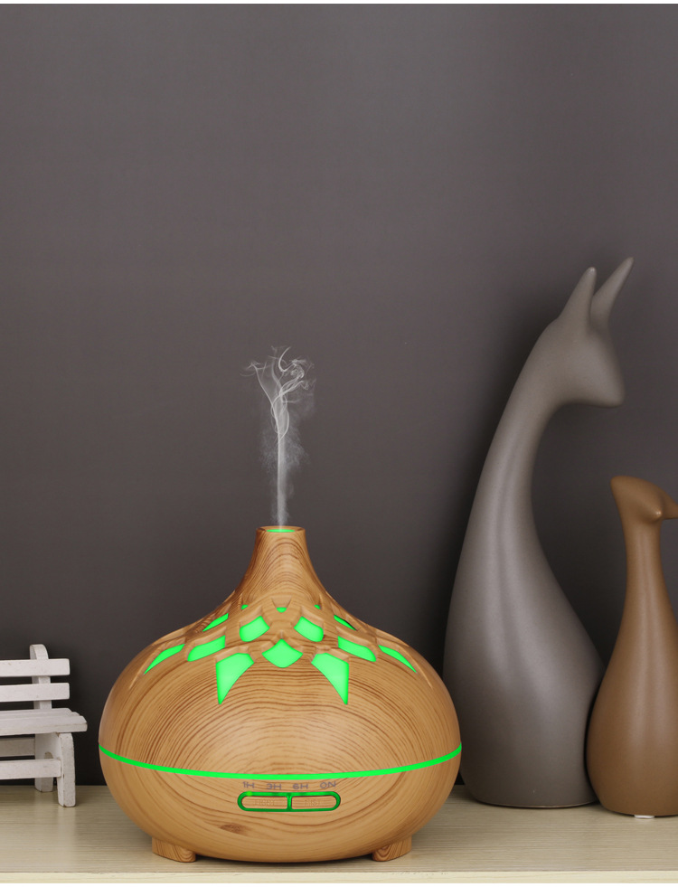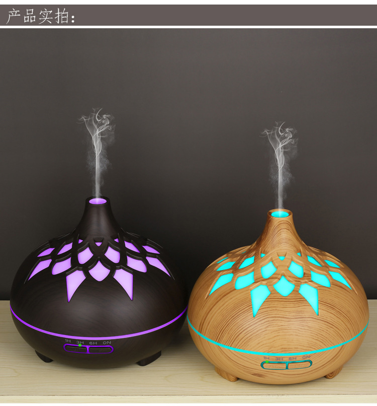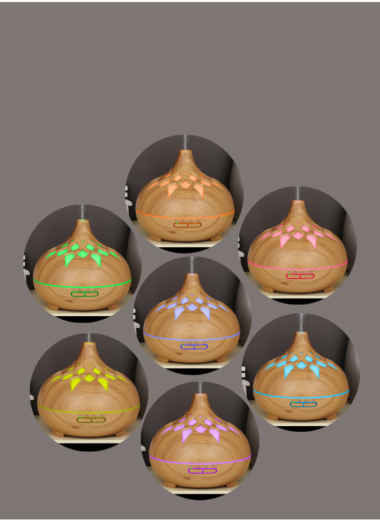 Nueva creativa grano de madera máquina aromaterapia humidificador ahueca hacia fuera 7 Luz color 500ml control remoto música Bluetooth
