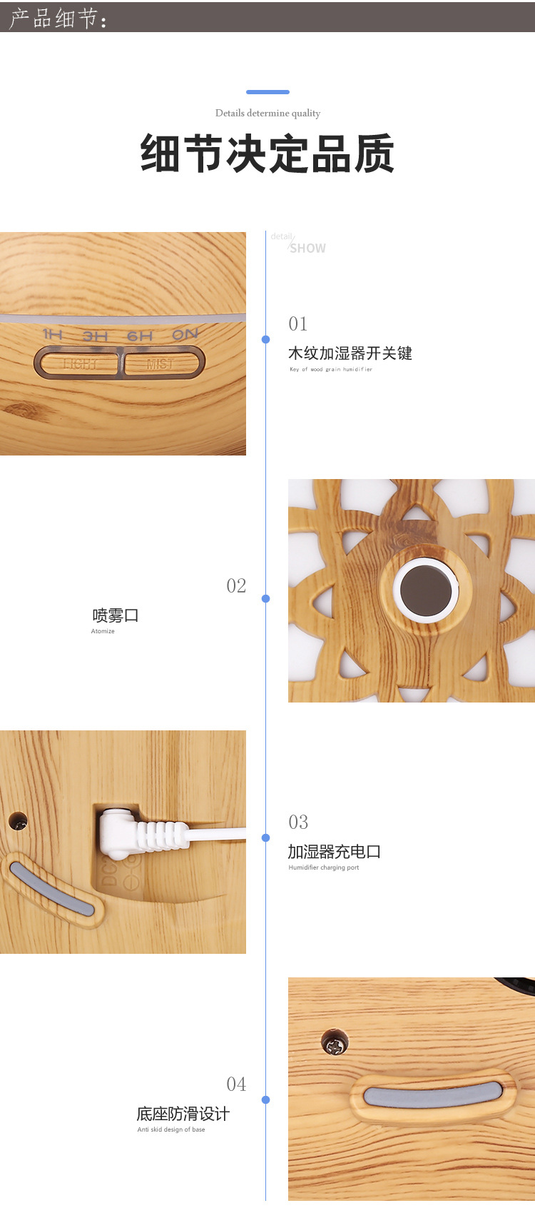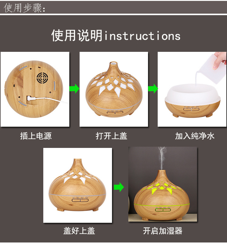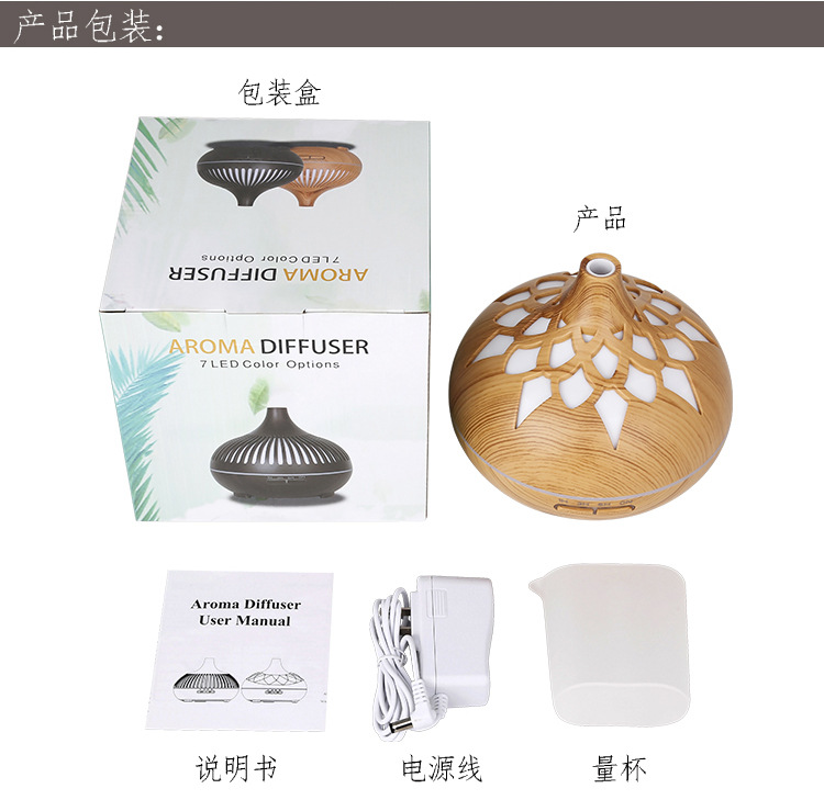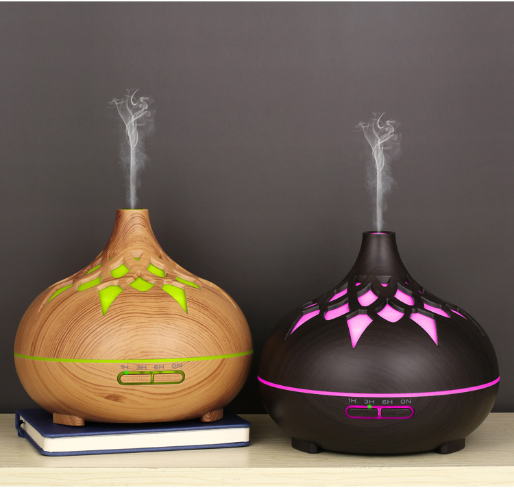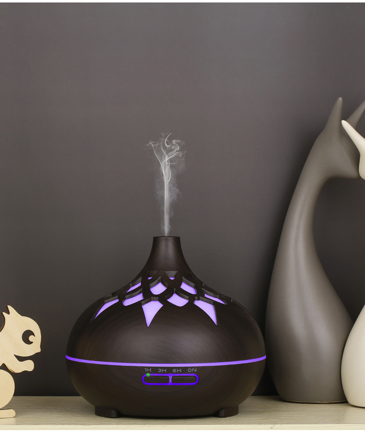 Nueva creativa grano de madera máquina aromaterapia humidificador ahueca hacia fuera 7 Luz color 500ml control remoto música Bluetooth