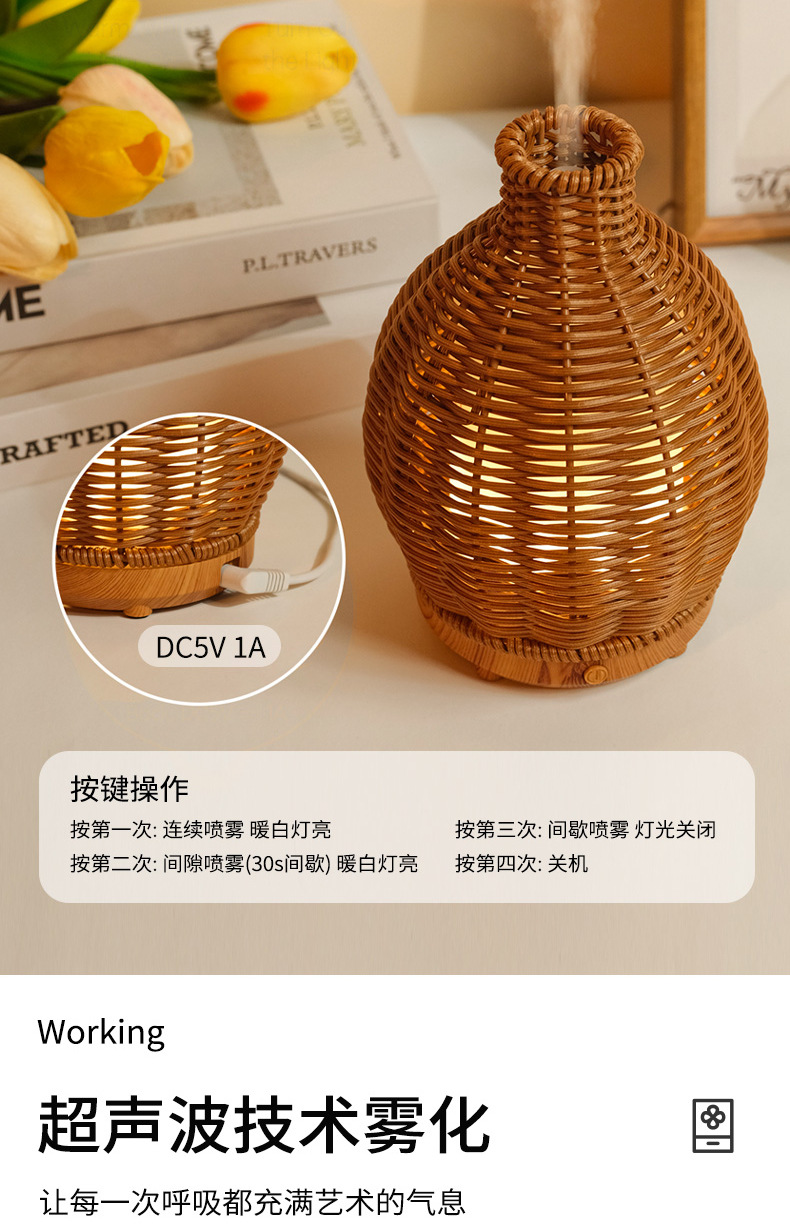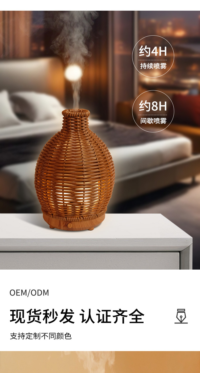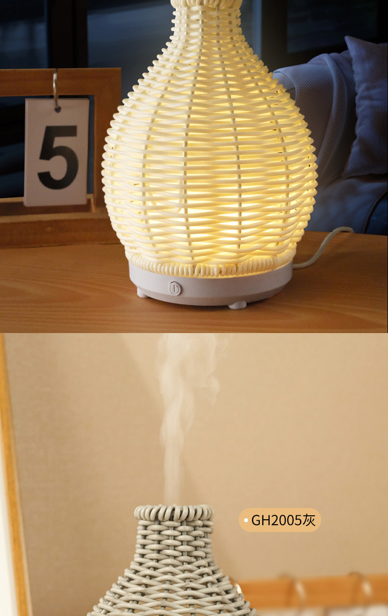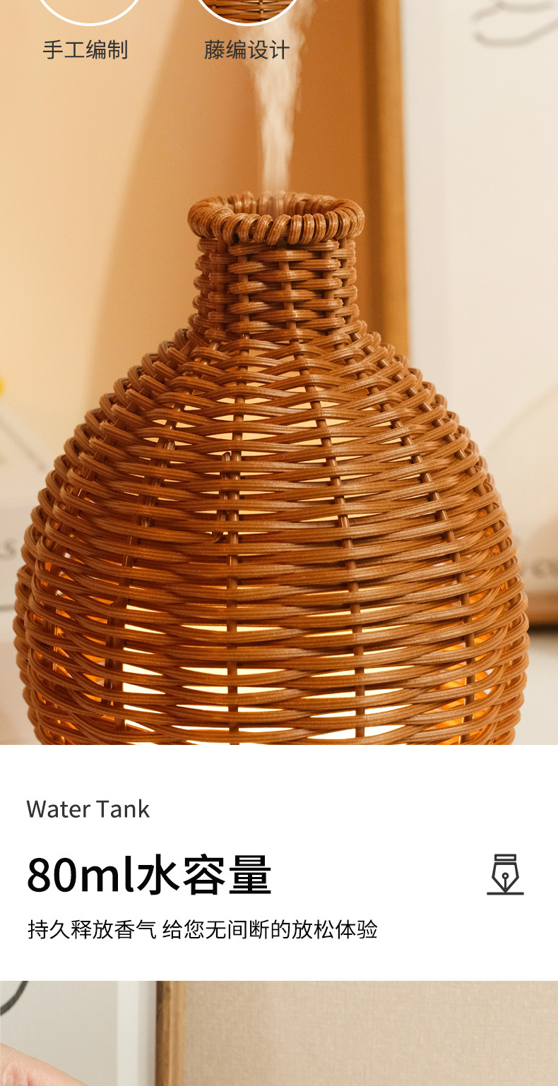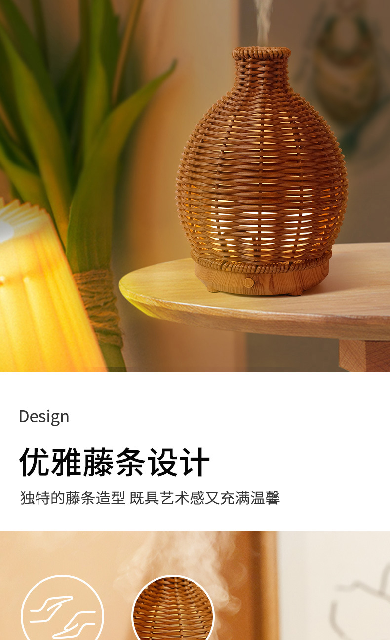 Nueva transfronteriza USB ratán hogar aromaterapia humidificador oficina escritorio grano de madera ultrasónico aceite esencial máquina de aromaterapia