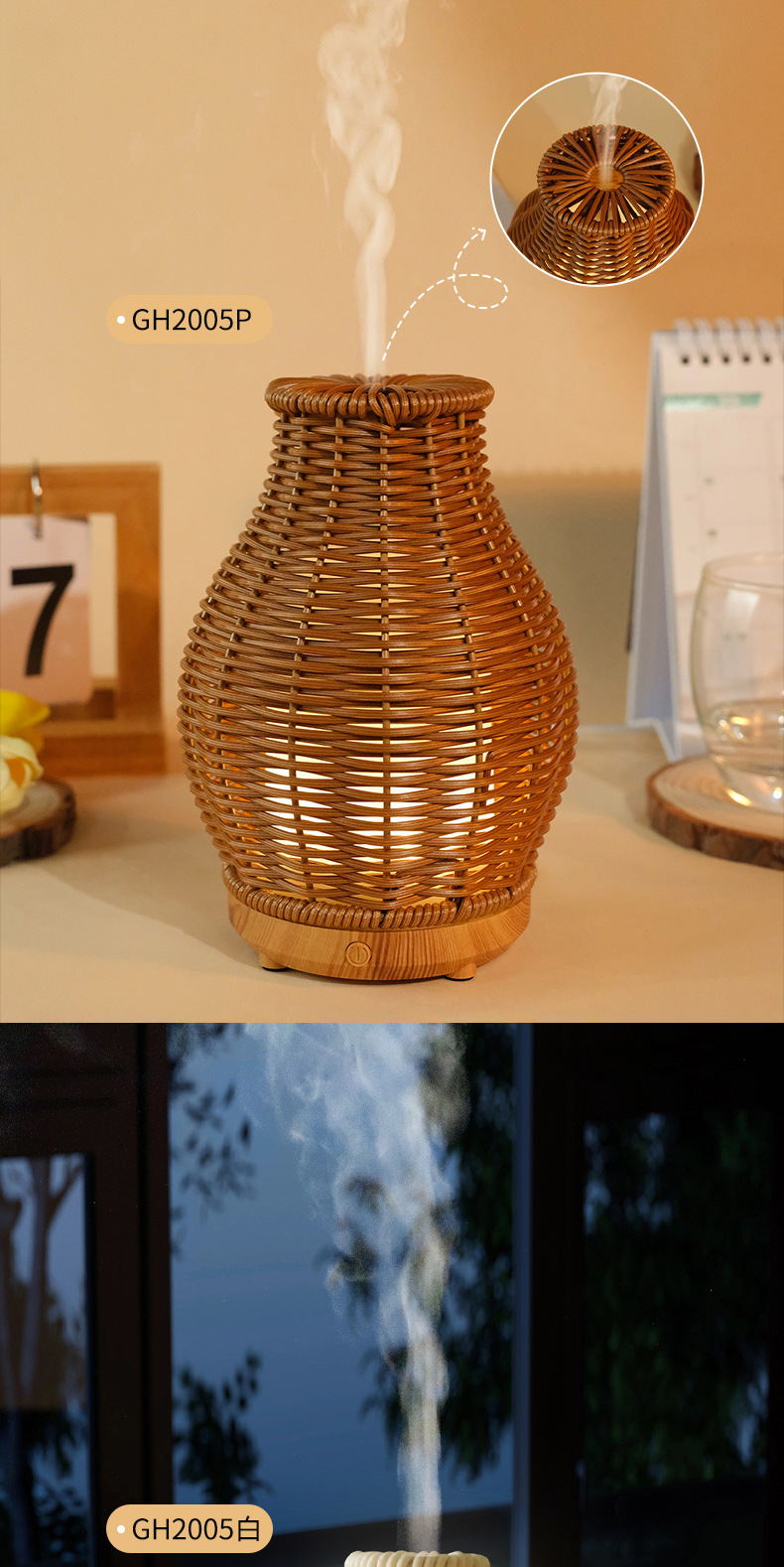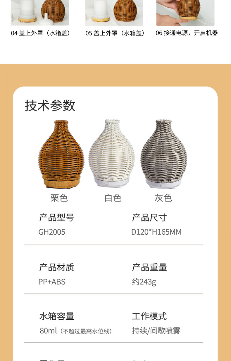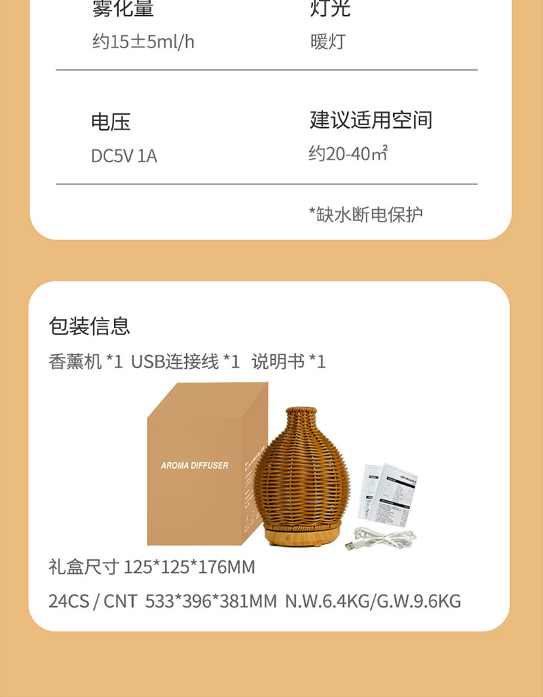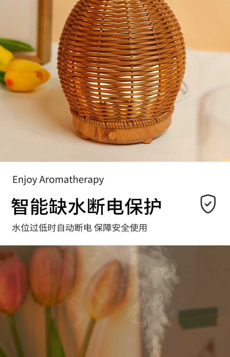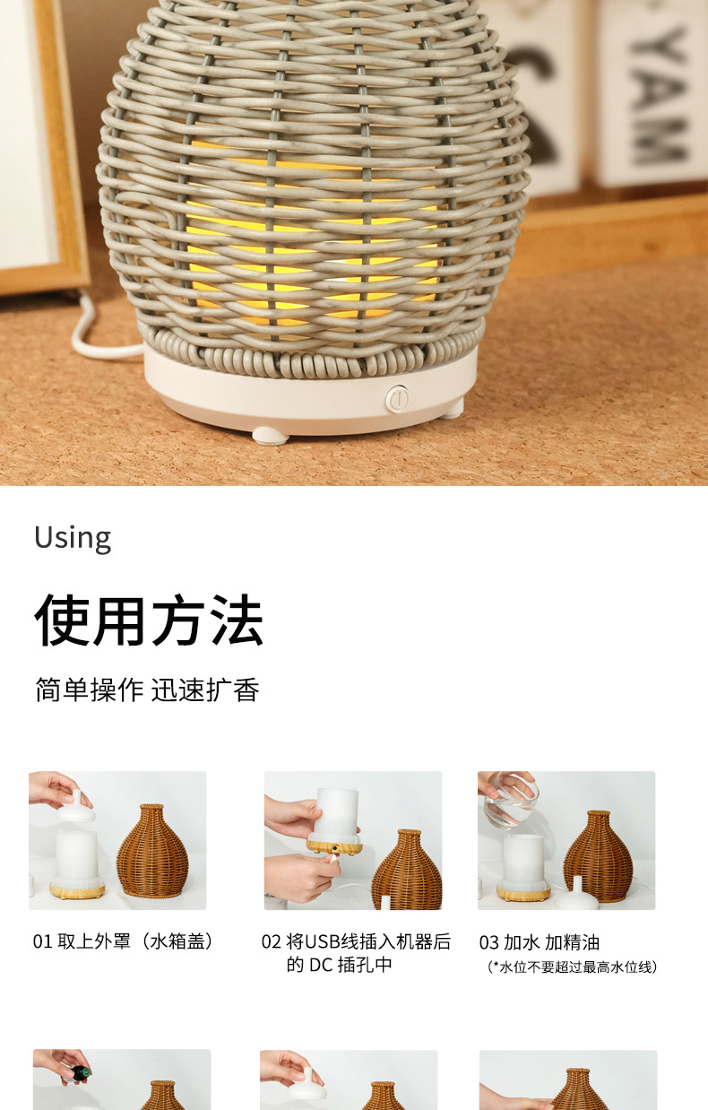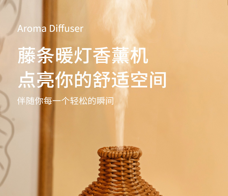 Nueva transfronteriza USB ratán hogar aromaterapia humidificador oficina escritorio grano de madera ultrasónico aceite esencial máquina de aromaterapia