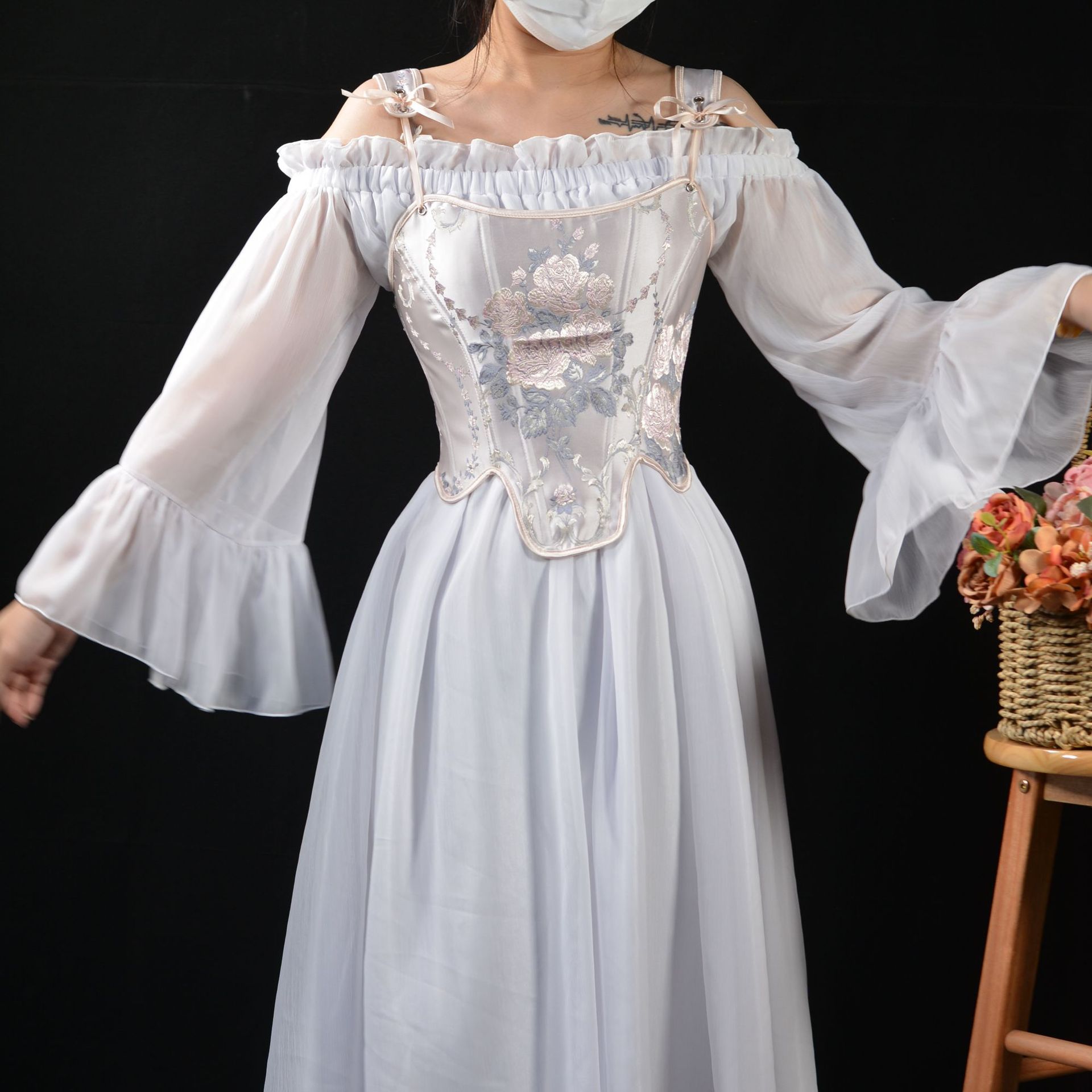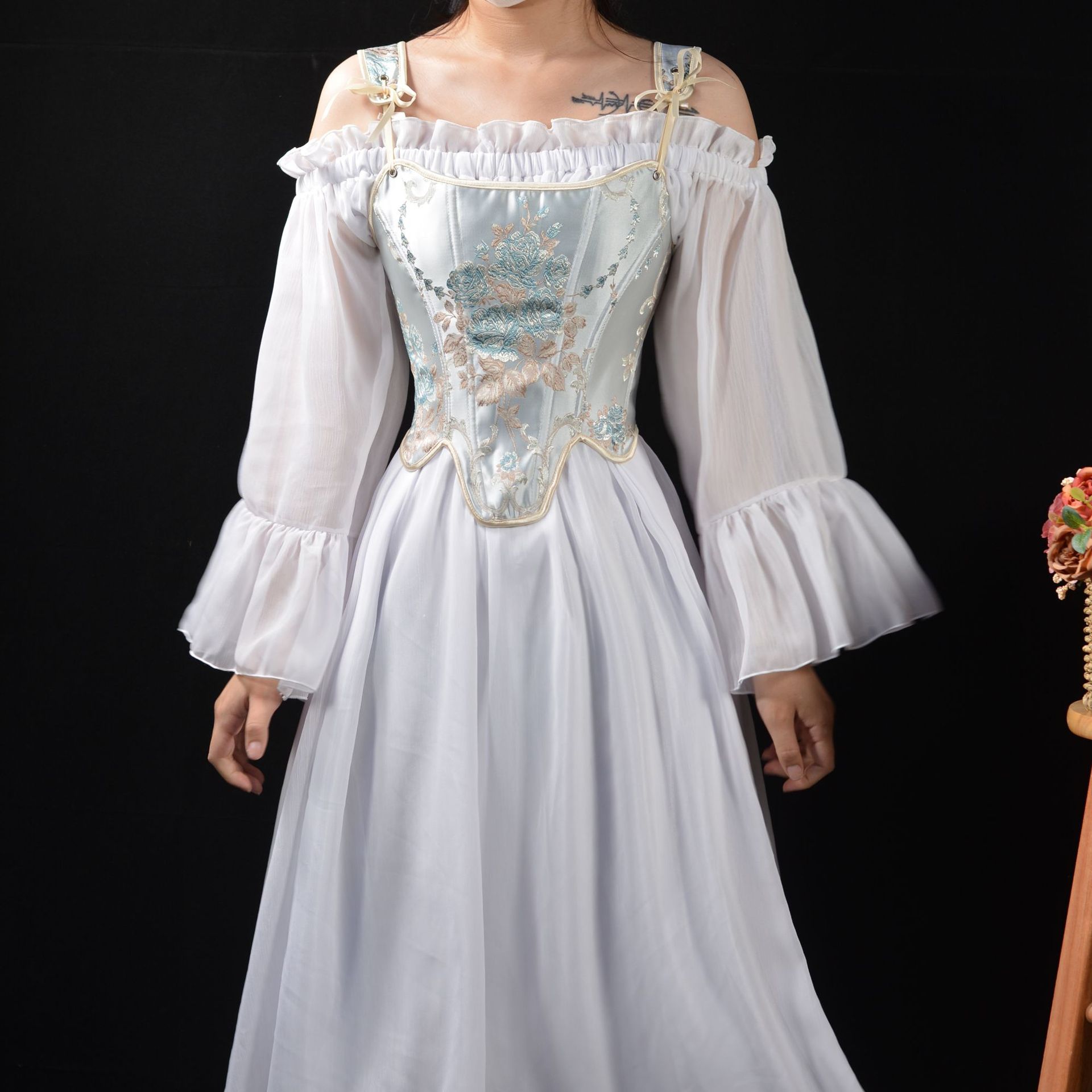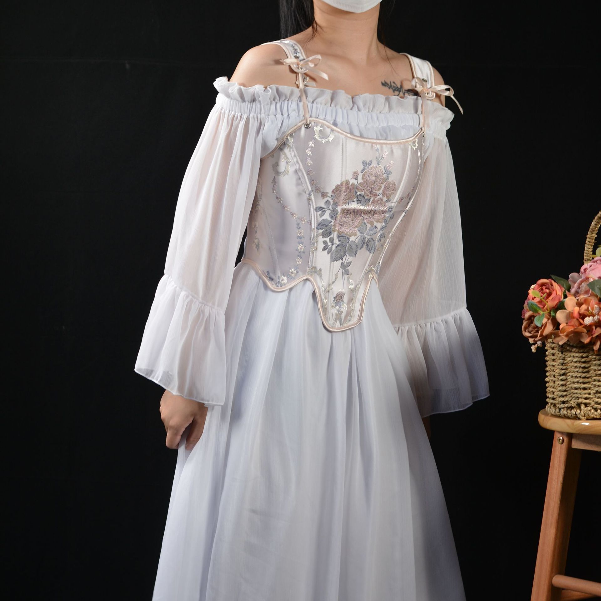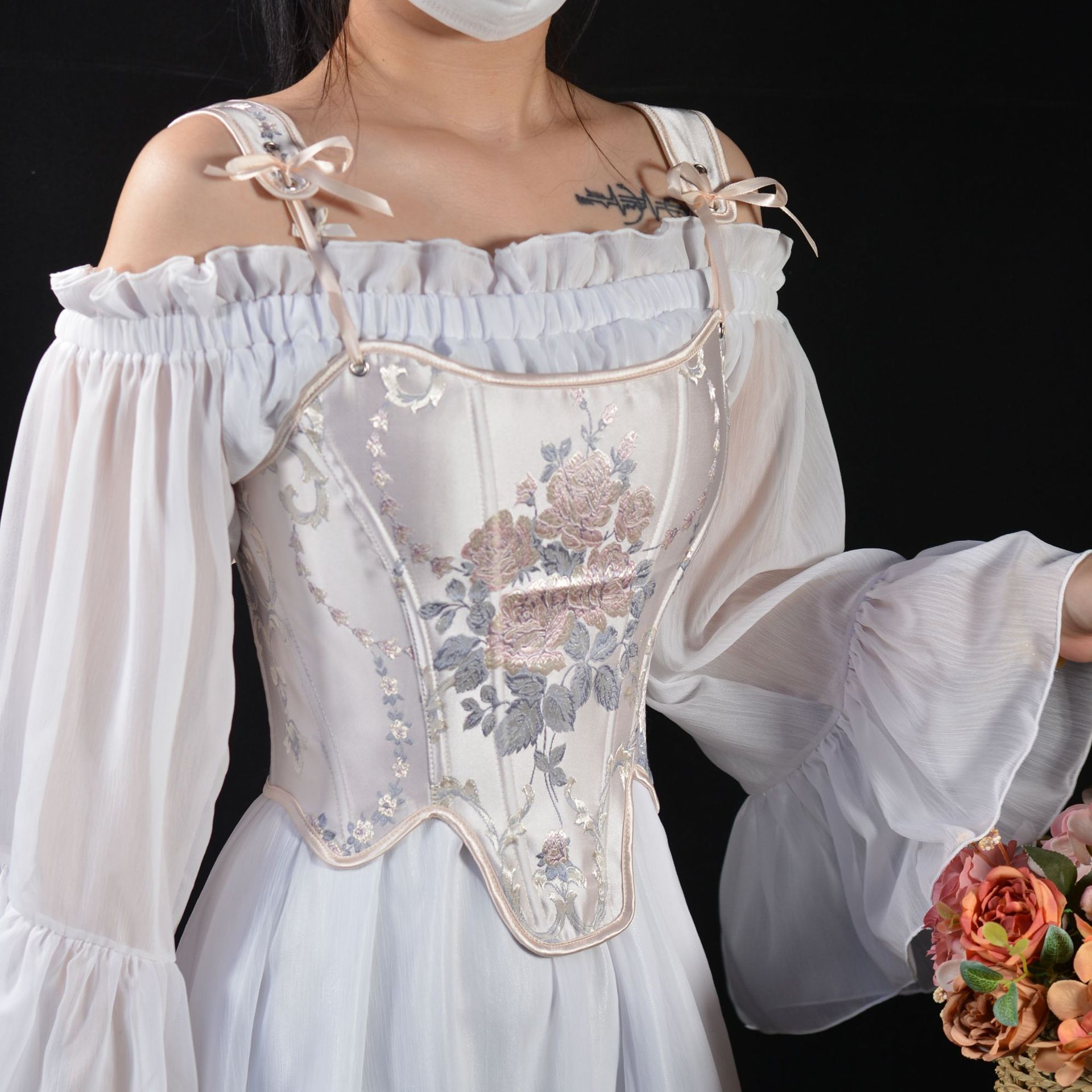 377 posicionamiento flor Europea corte cadena flor bordado pecho soporte todo partido corsé Fishbone medias princesa estilo