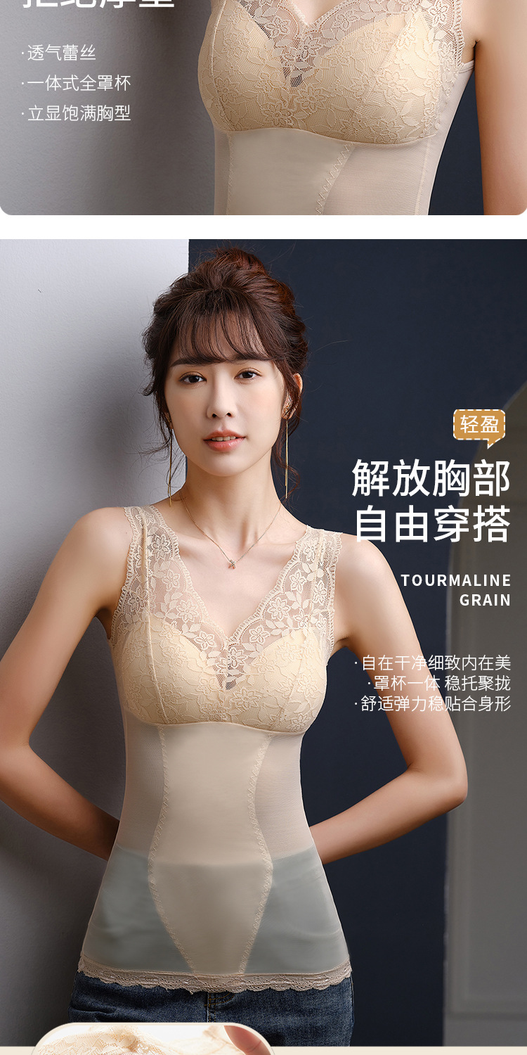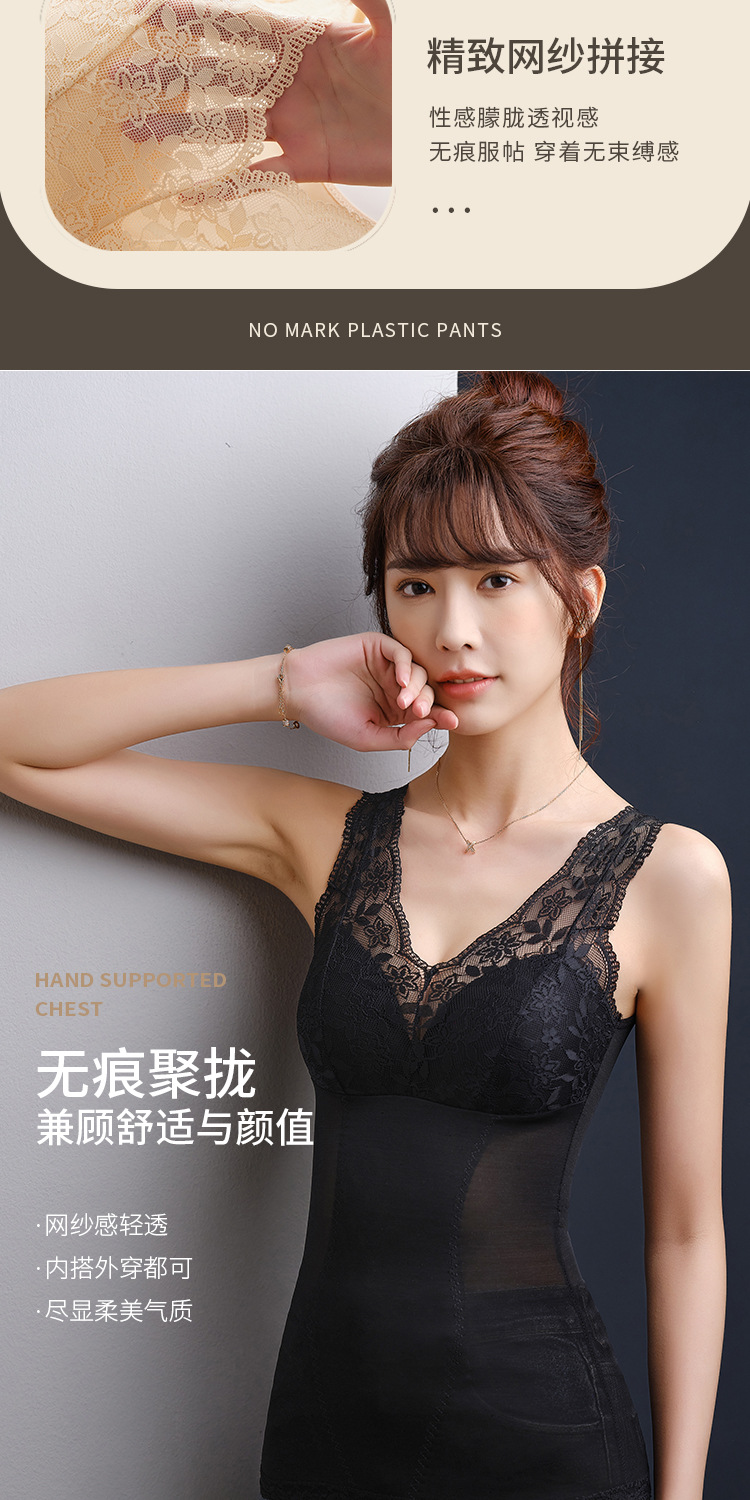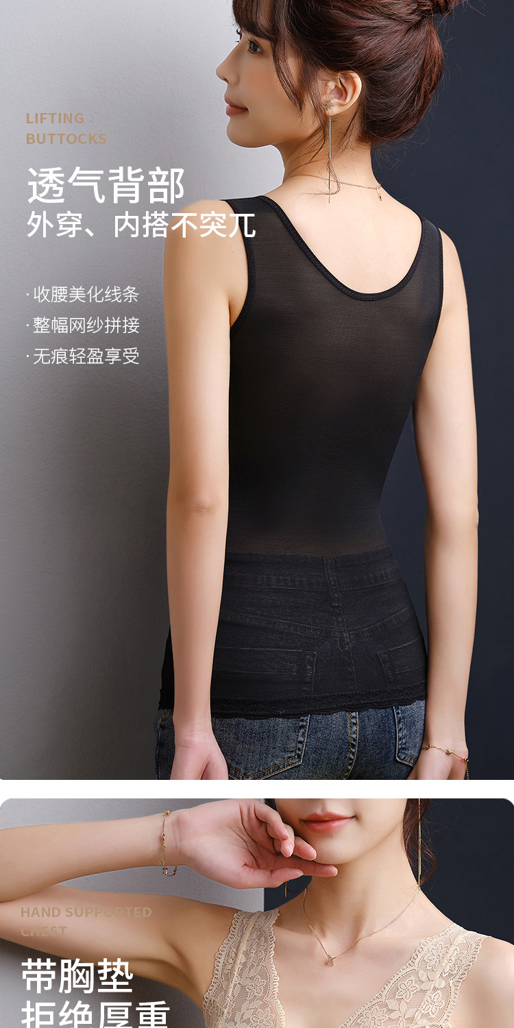 Cuerpo de malla de encaje sexy que forma el chaleco de una pieza SLIM-Fit largo que forma la ropa interior superior del tubo de adelgazamiento con almohadilla en el pecho