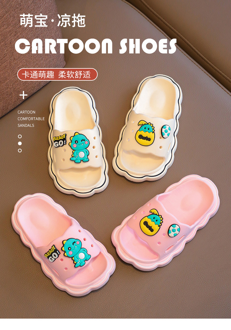 Los niños de dibujos animados de verano nuevo interior de fondo suave antideslizante zapatillas Sandalias de los niños dinosaurio bebé niños zapatillas