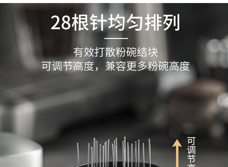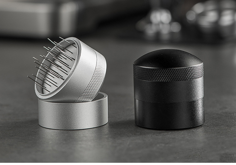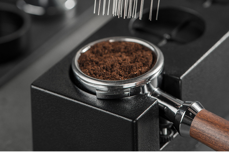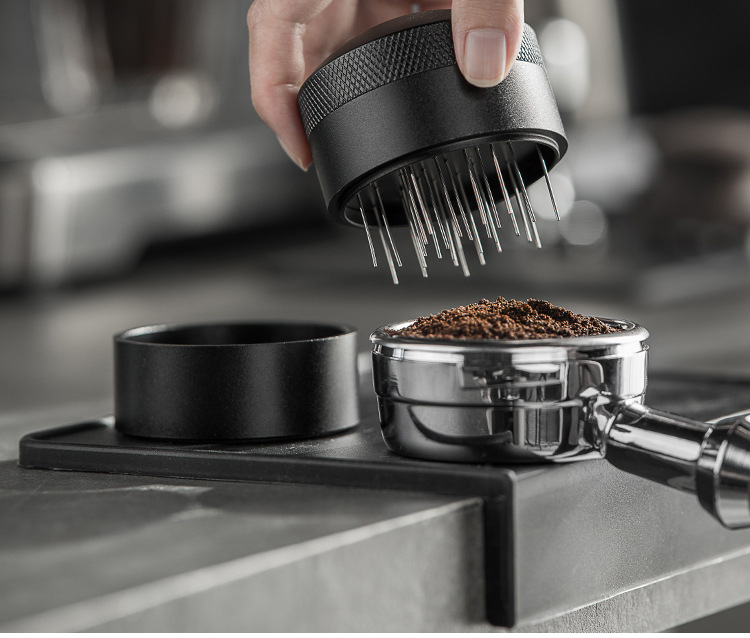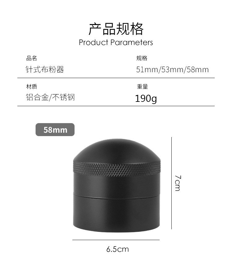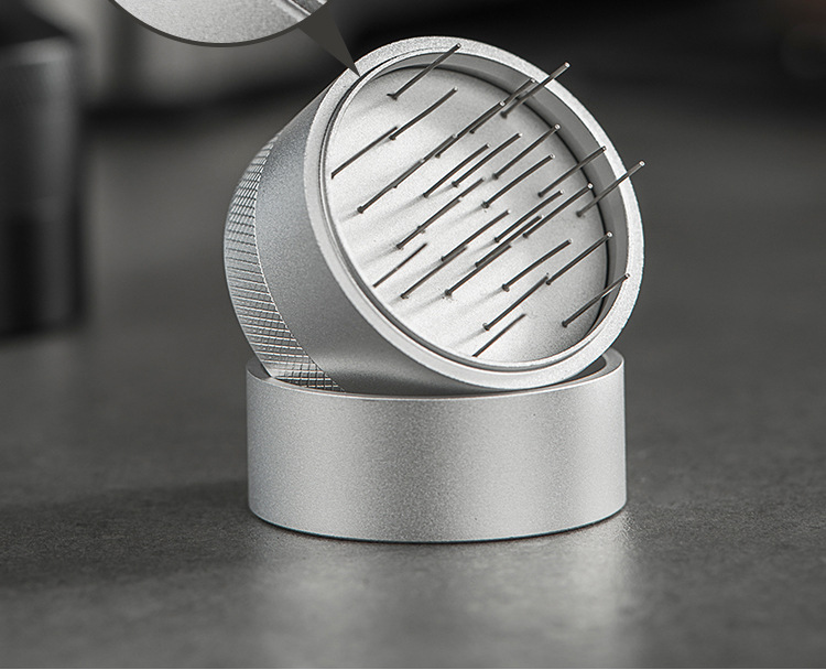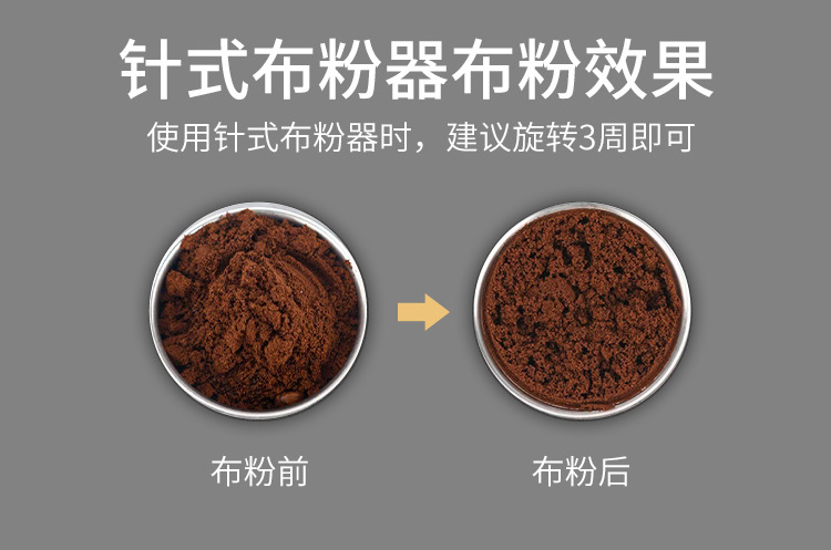 Aguja de polvo de tela Dispositivo de polvo de tela de café Aguja de polvo suelto de acero inoxidable con mango de café de base Aparato de polvo suelto 51/58mm