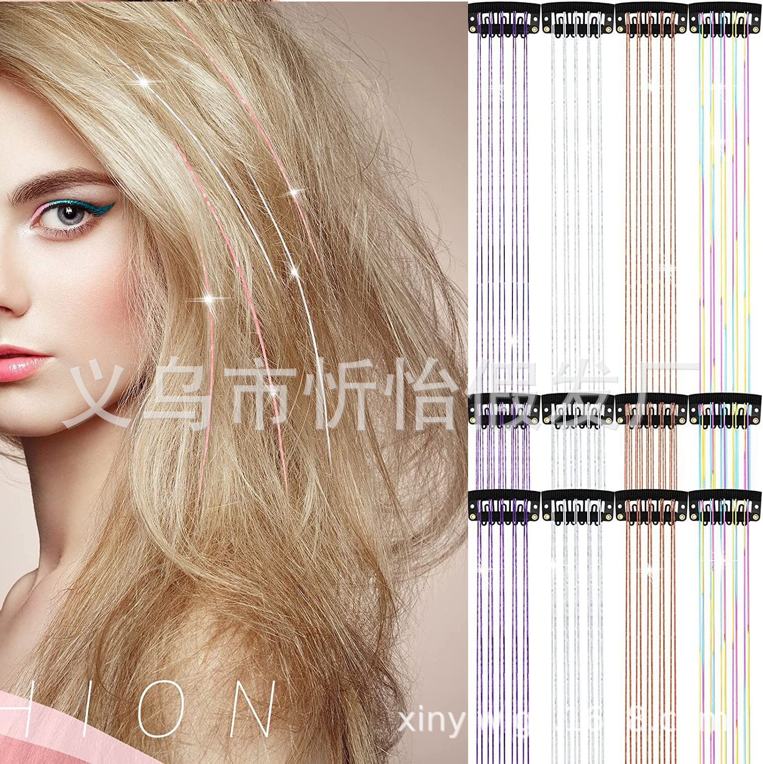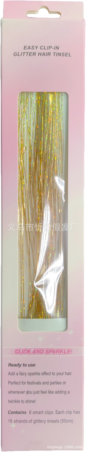 Extensiones de cabello sin costuras, superventas, comercio exterior, 6 piezas, alambre dorado láser, cinta brillante, peluca de pelo liso, pieza de cabello teñido artificial