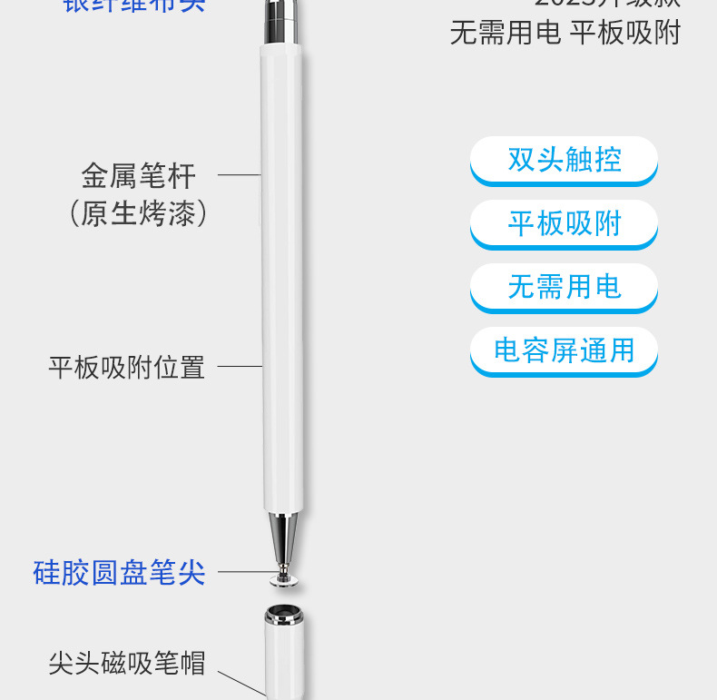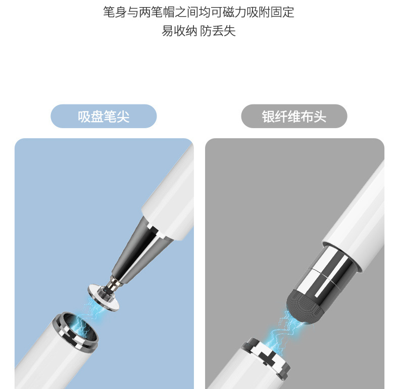 Aplicable a la pluma capacitiva magnética del lado del iPad Apple Android tableta del teléfono móvil lápiz táctil universal de dos cabezas