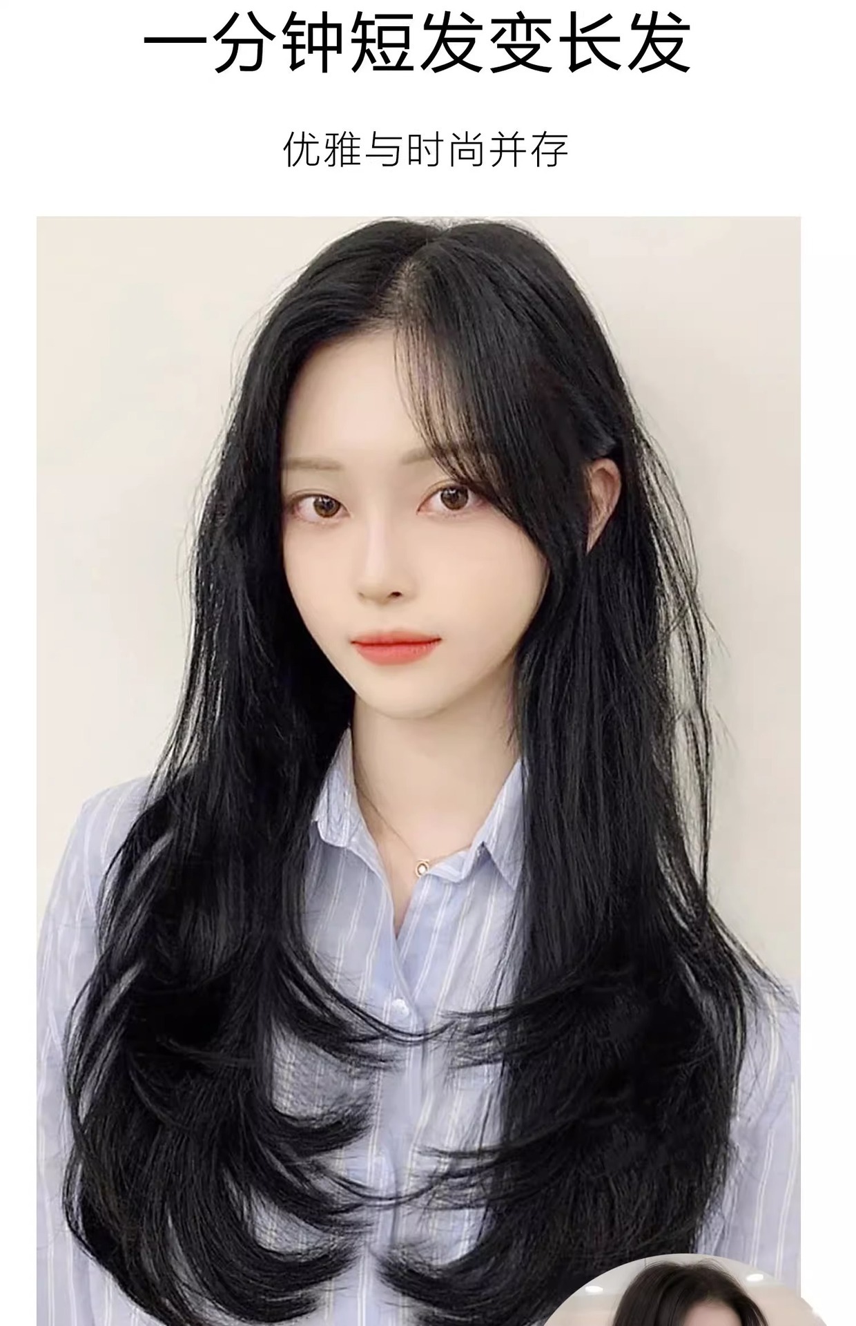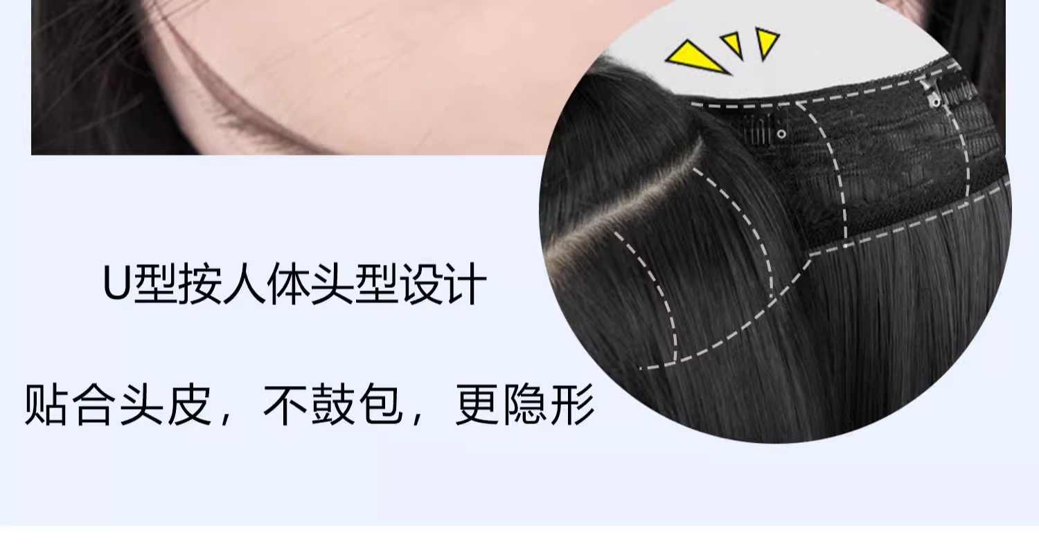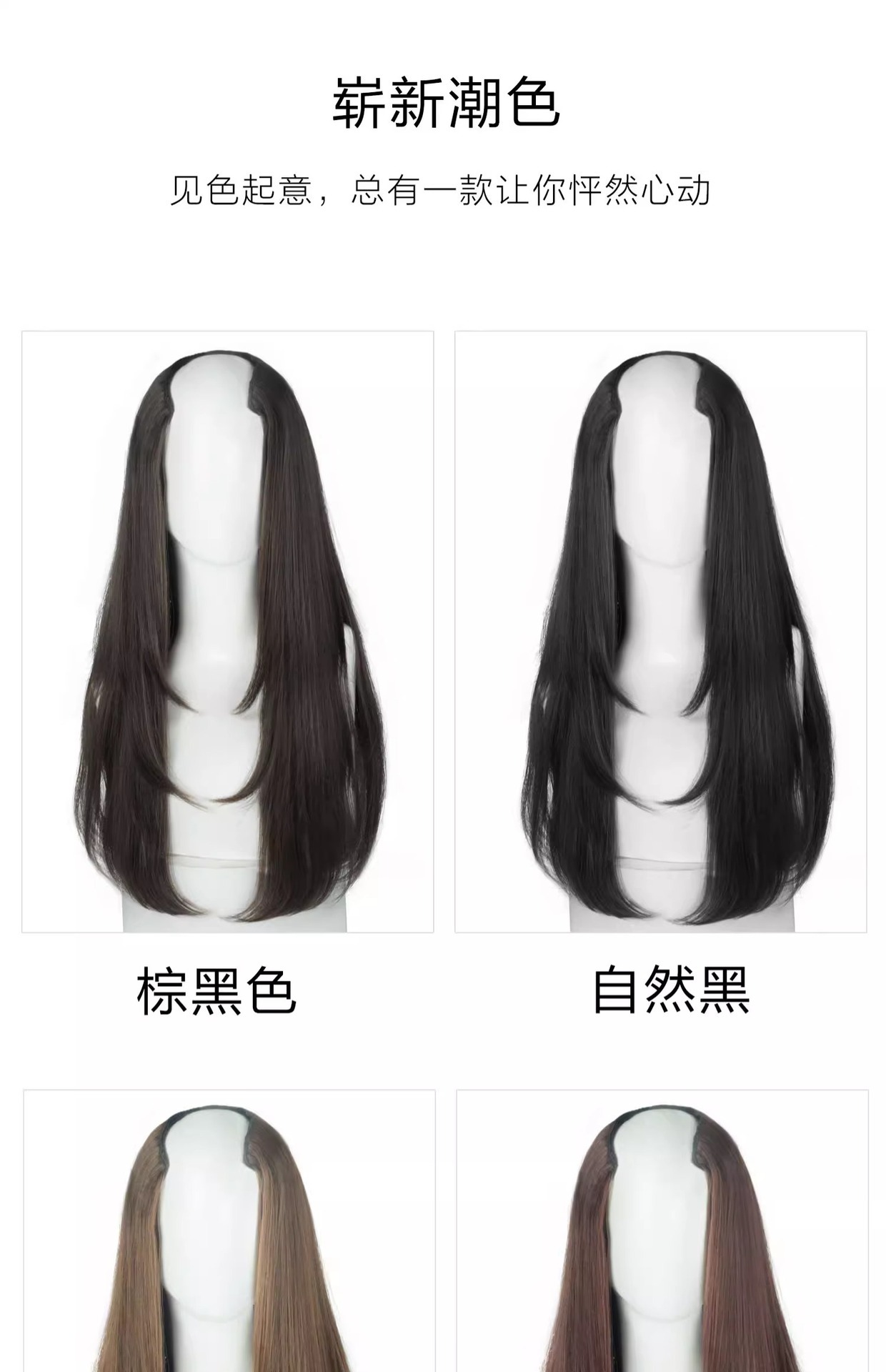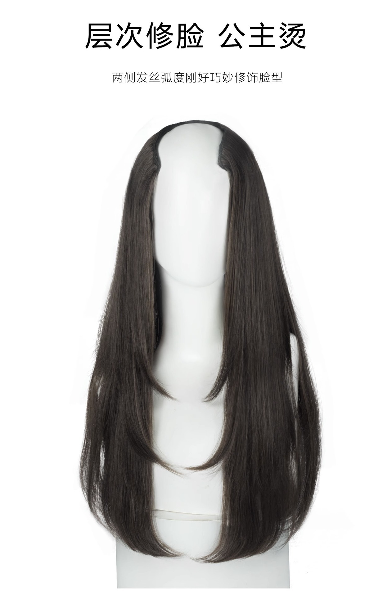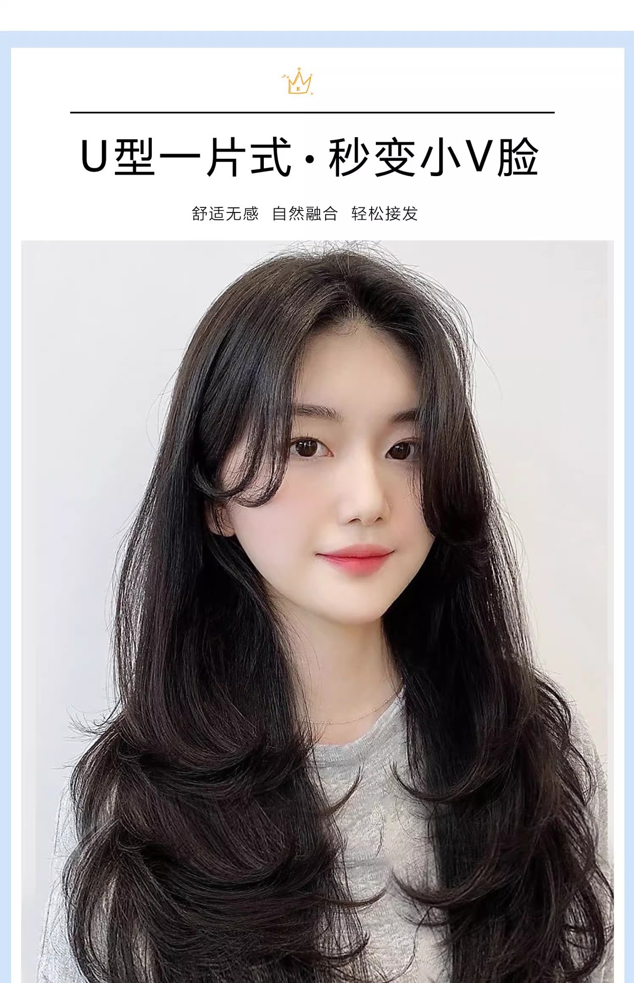Peluca de cabello largo de mujer de una pieza invisible sin costuras volumen francés en forma de U volumen esponjoso parche de extensión de cabello de alto nivel