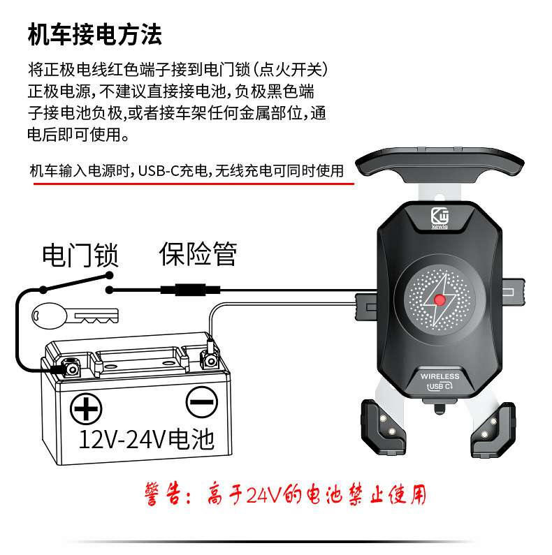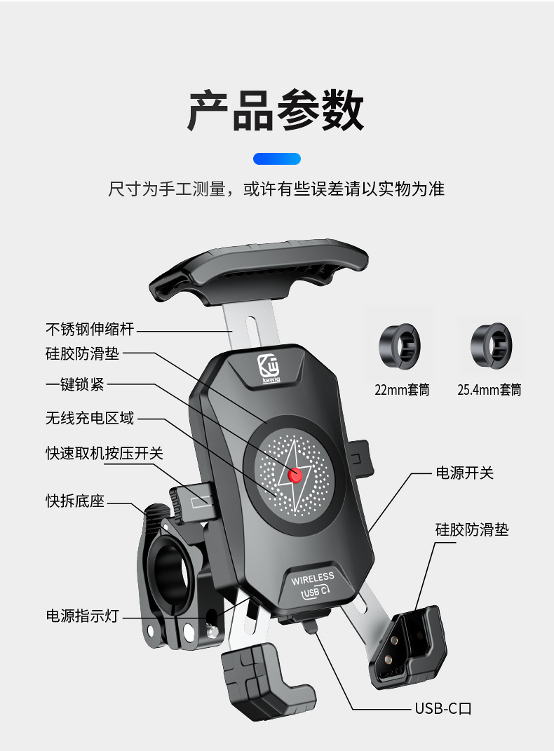 Kaiweige motocicleta 15W carga inalámbrica PD carga rápida dos en uno de doble modo de navegación de carga soporte de teléfono móvil