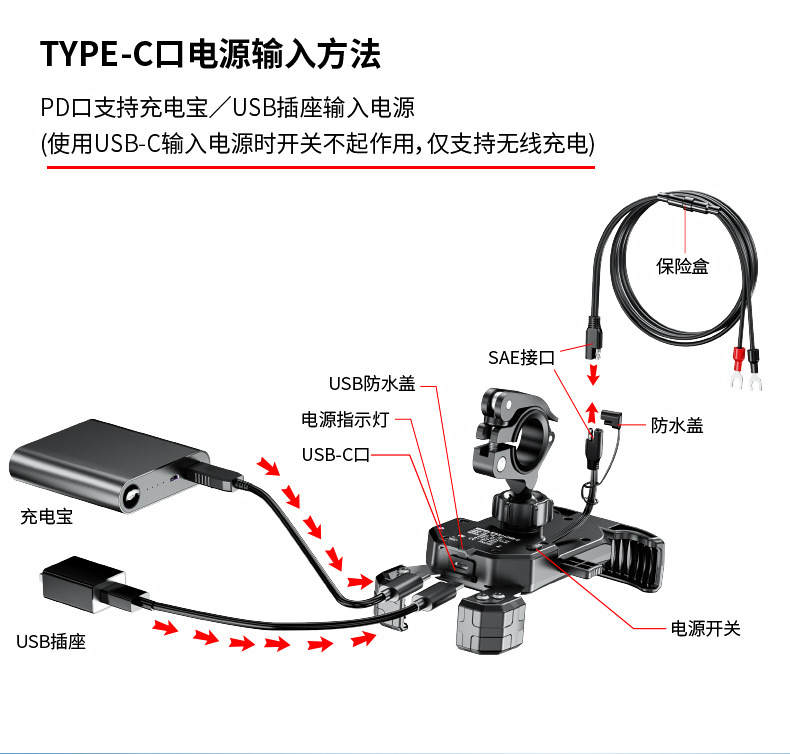 | Nombre del producto | Motocicleta 15W carga inalámbrica PD carga rápida dos en un soporte de teléfono móvil de carga de navegación |