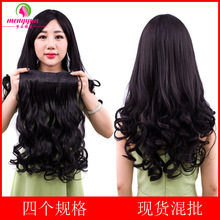 Peluca de mujer europea y americana extensión de cabello sin costuras de onda grande pieza de Peluca de una pieza de peluca larga y rizada de 4 tarjetas
