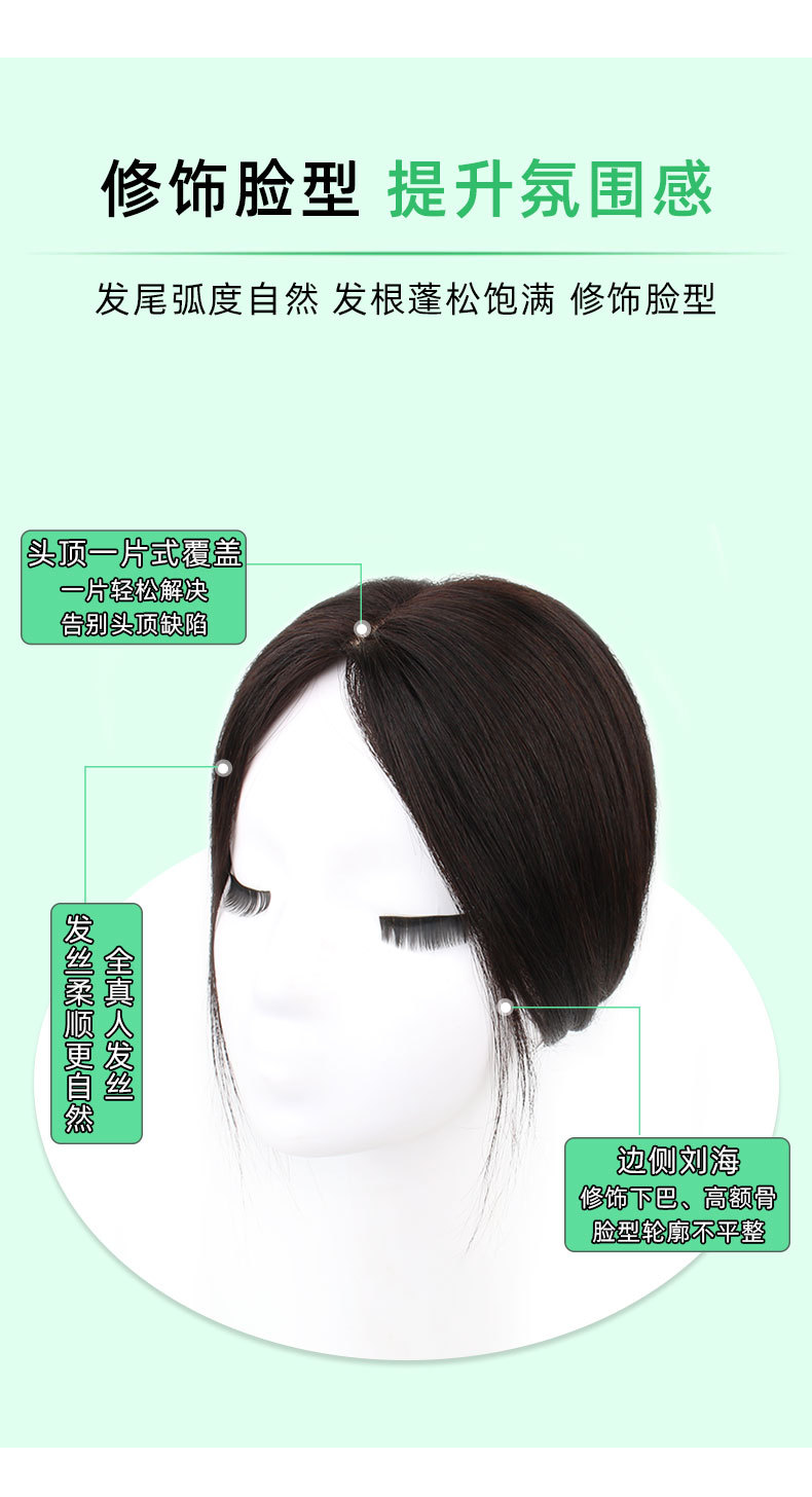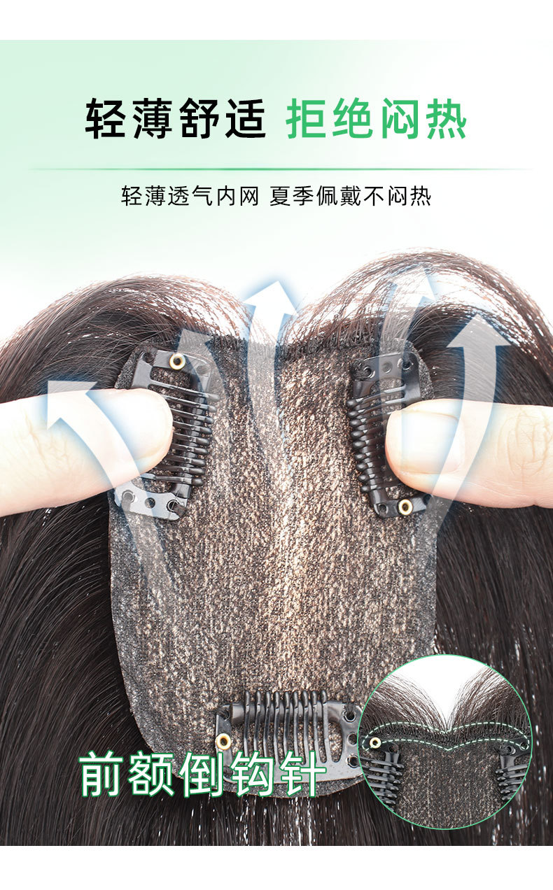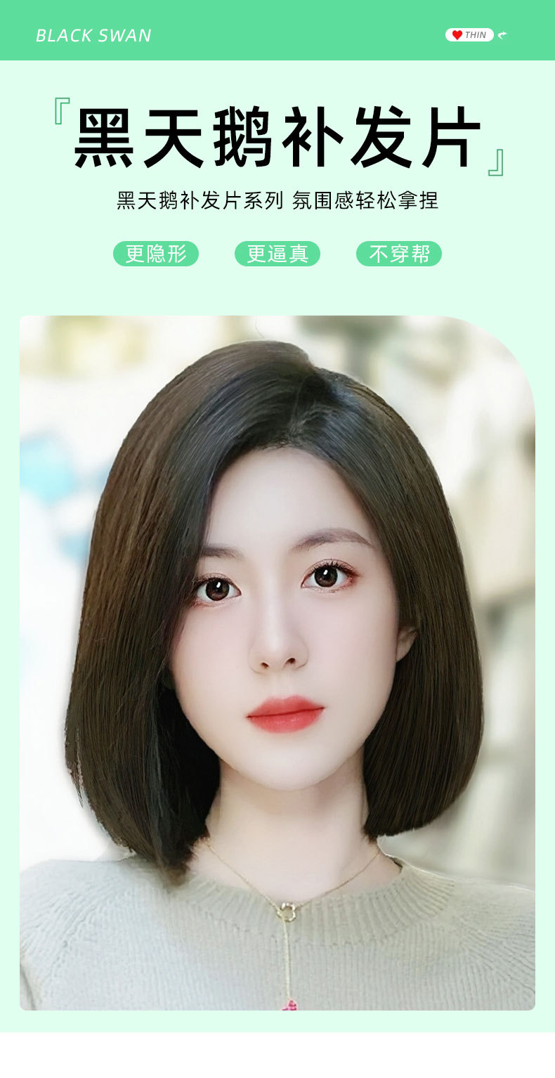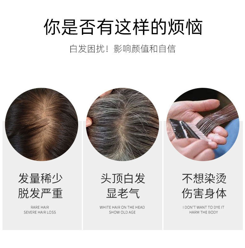 Pieza de peluca cabeza reemplazo de cabello Cisne negro pieza de cabello real cubierta de cabello blanco simulación cuero cabelludo puntos libres Volumen de cabello adicional en stock al por mayor