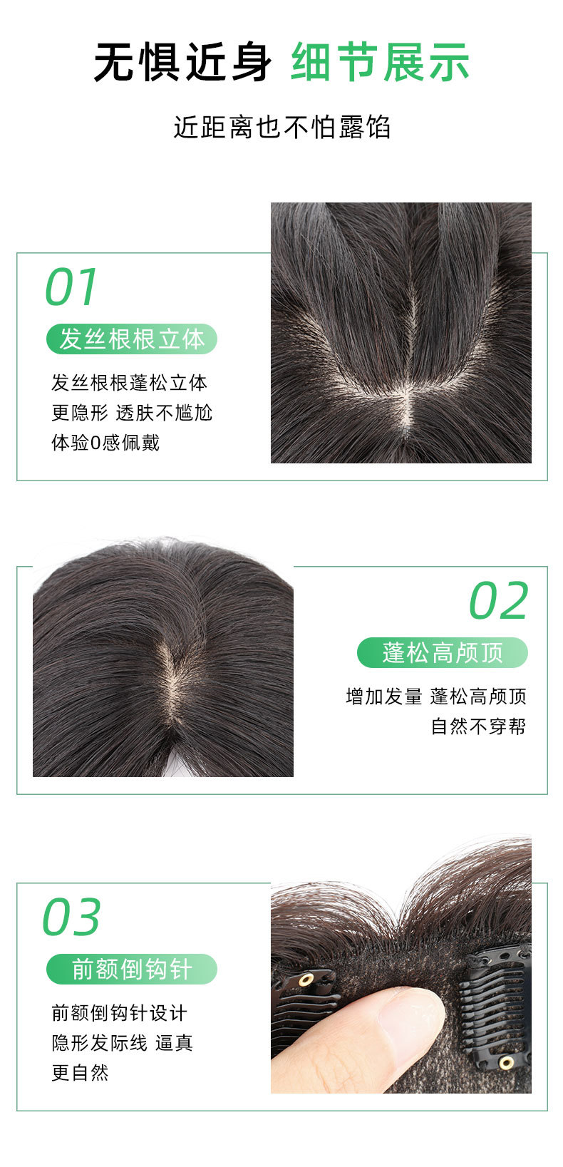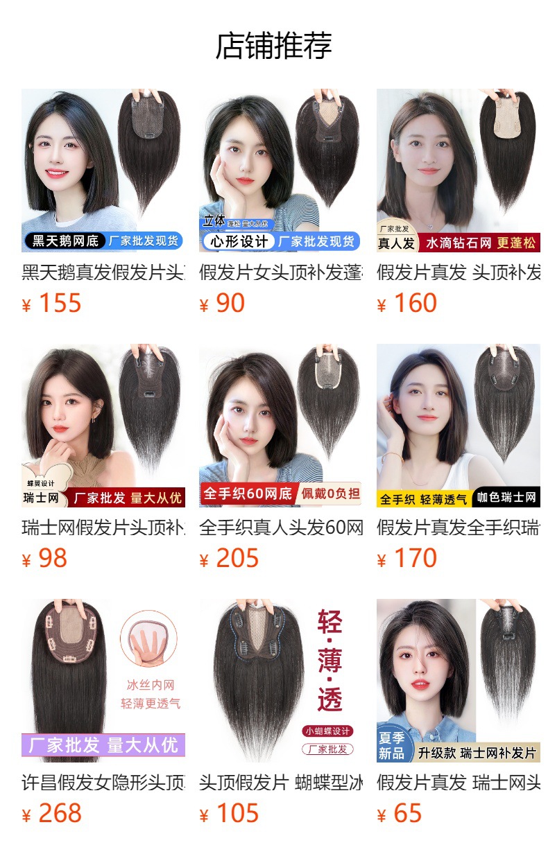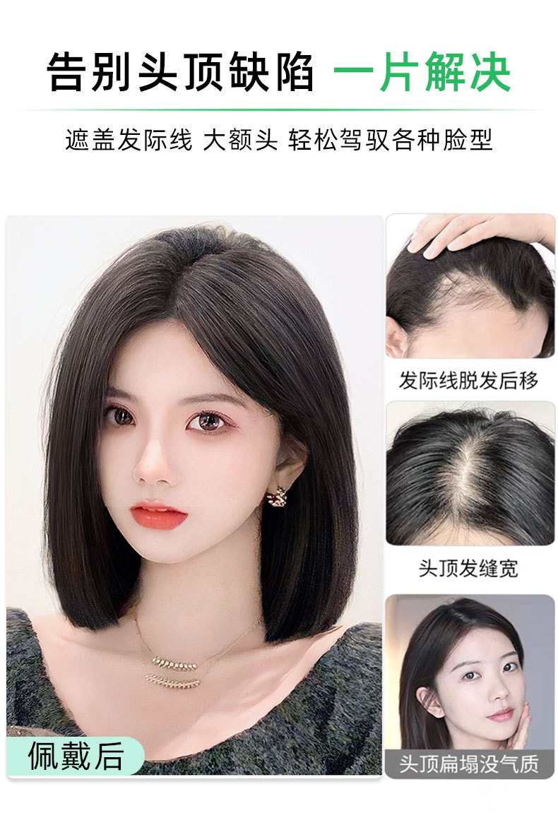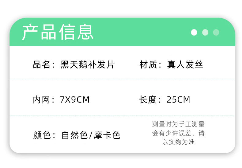 Pieza de peluca cabeza reemplazo de cabello Cisne negro pieza de cabello real cubierta de cabello blanco simulación cuero cabelludo puntos libres Volumen de cabello adicional en stock al por mayor
