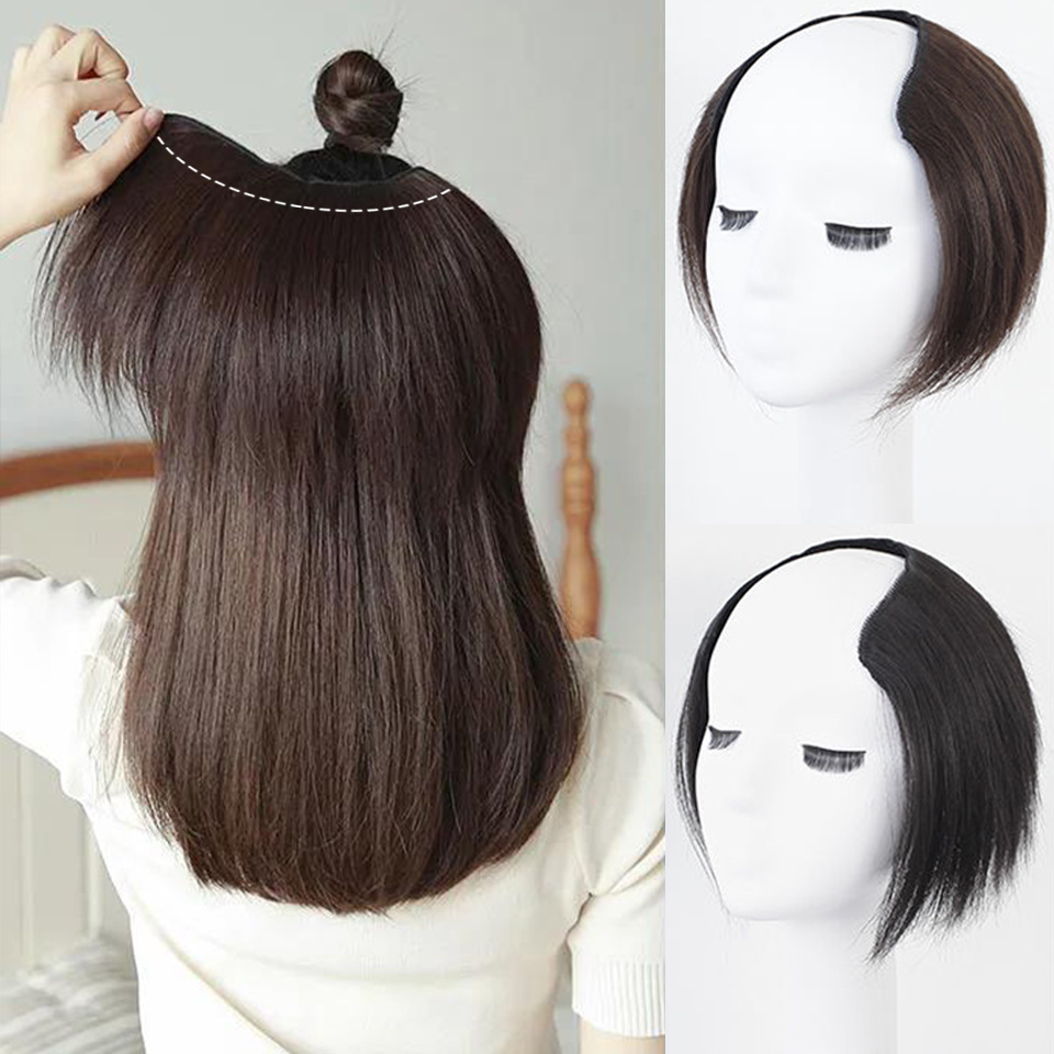 Pieza de peluca europea y americana transfronteriza en forma de u una pieza de cuatro tarjetas pieza de reemplazo de cabello liso almohadilla aumento del cabello volumen del cabello seda de alta temperatura 20cm