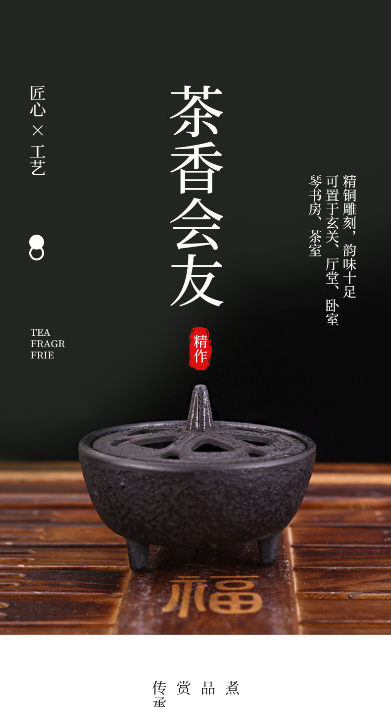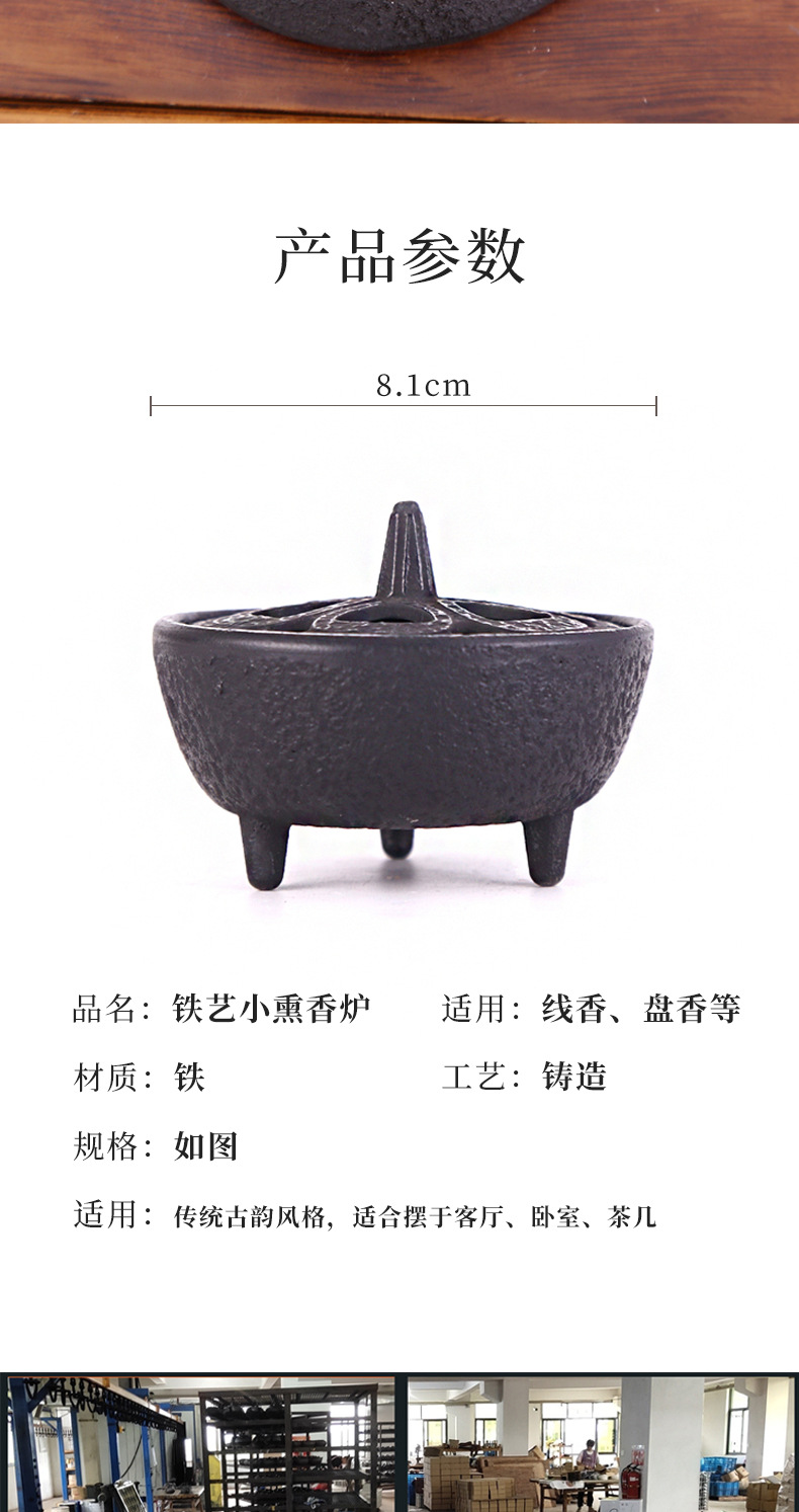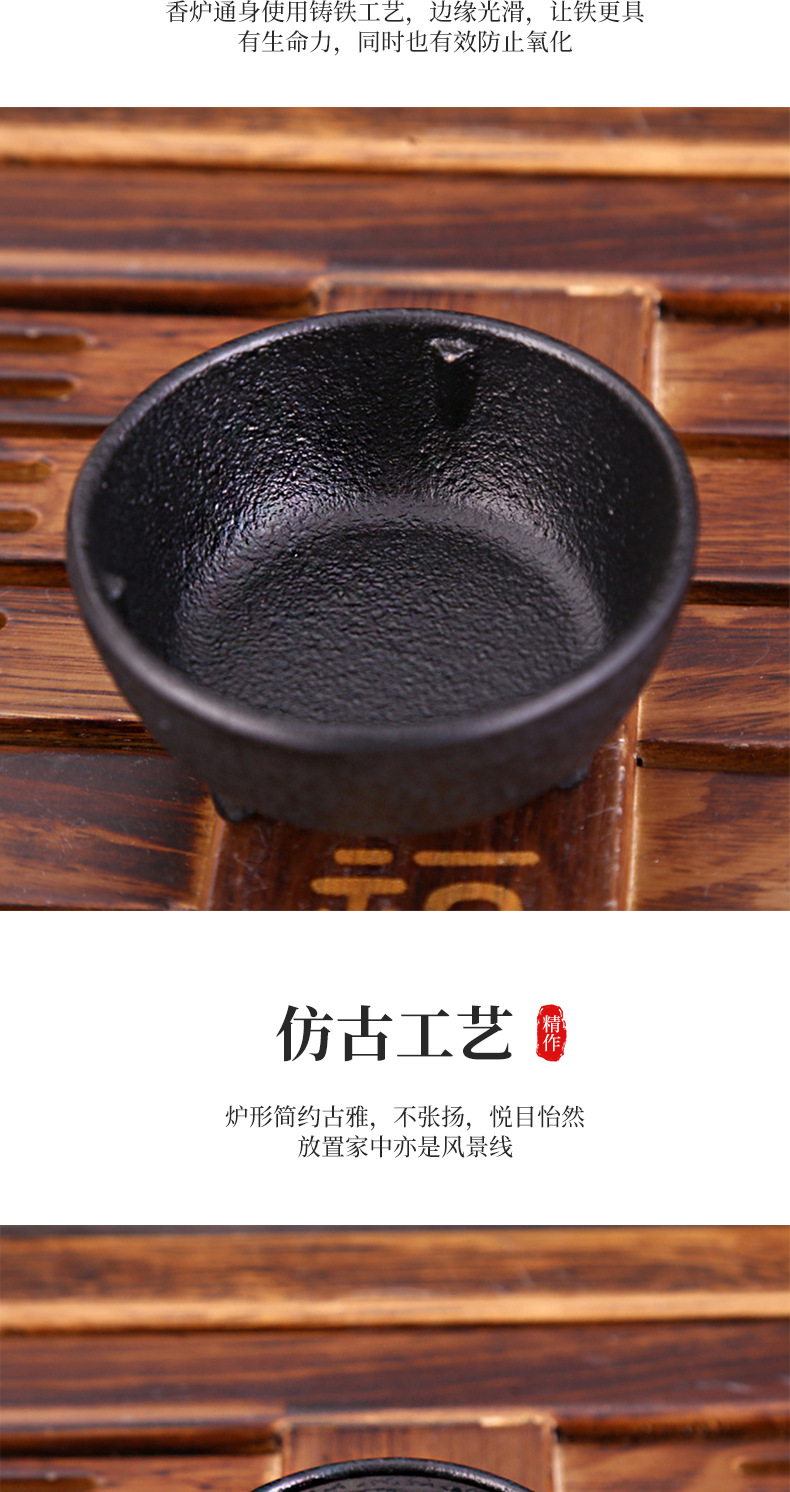 Pequeño quemador de incienso de hierro fundido para interiores, pequeño quemador de incienso de hierro crudo, decoración suave creativa, estufa de tres patas de metal, mesa de té, accesorios de camino de incienso