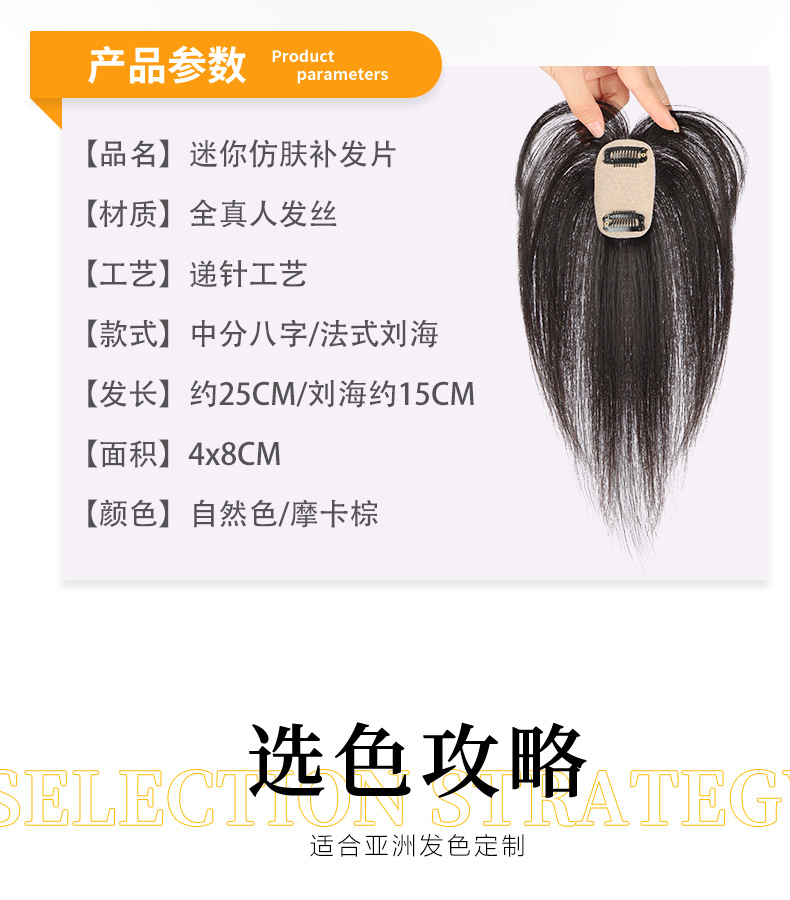 | Color | Simulación split 4*8-25cm medio split marrón,Artificial split 4*8-25cm Bangs color natural,División artificial 4*8-25cm medio split color natural,Simulación dividida 4*8-25cm Bangs Mocha Brown |