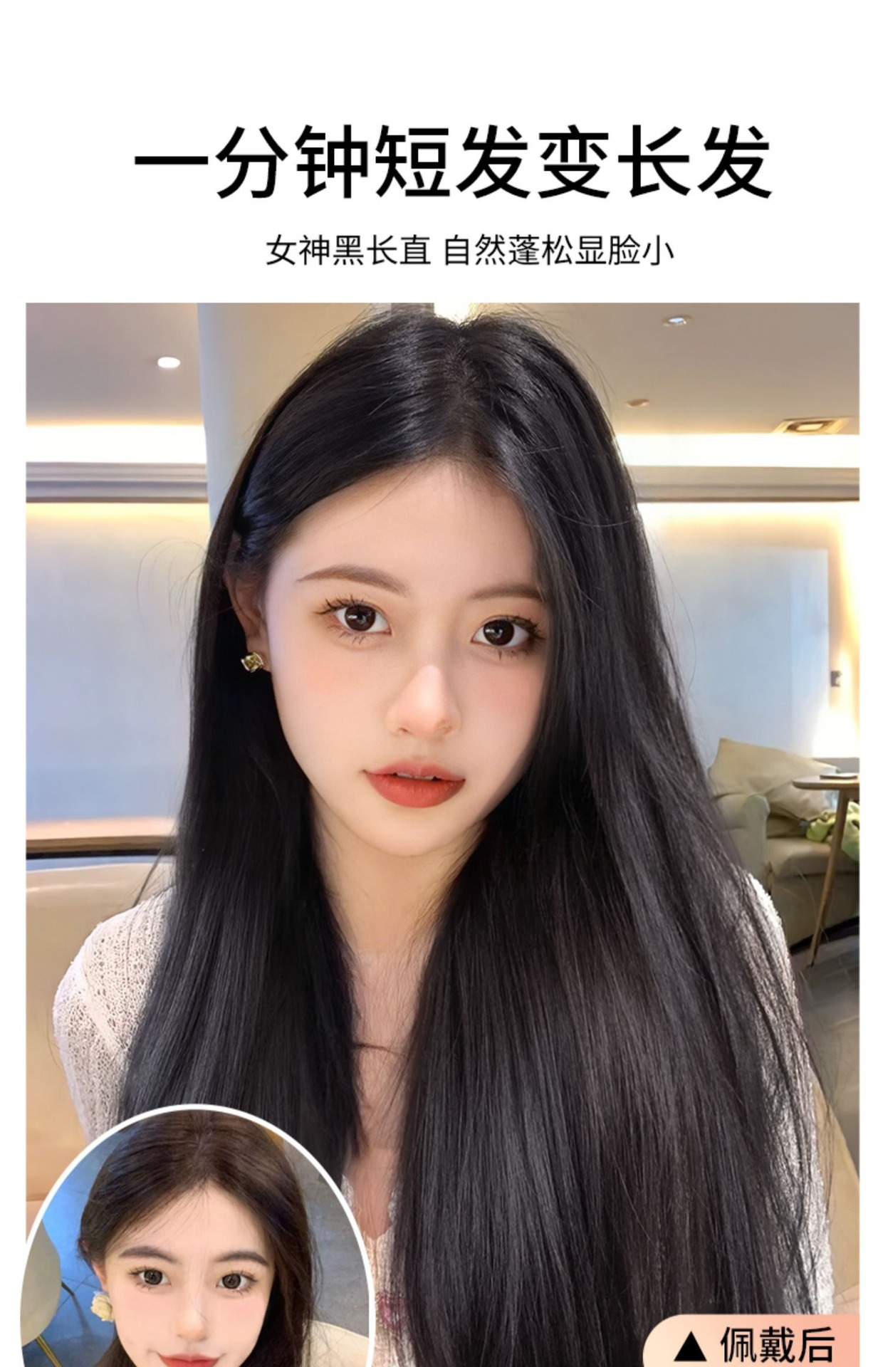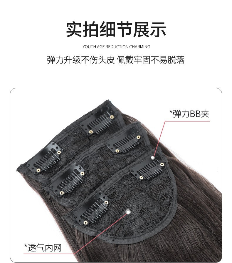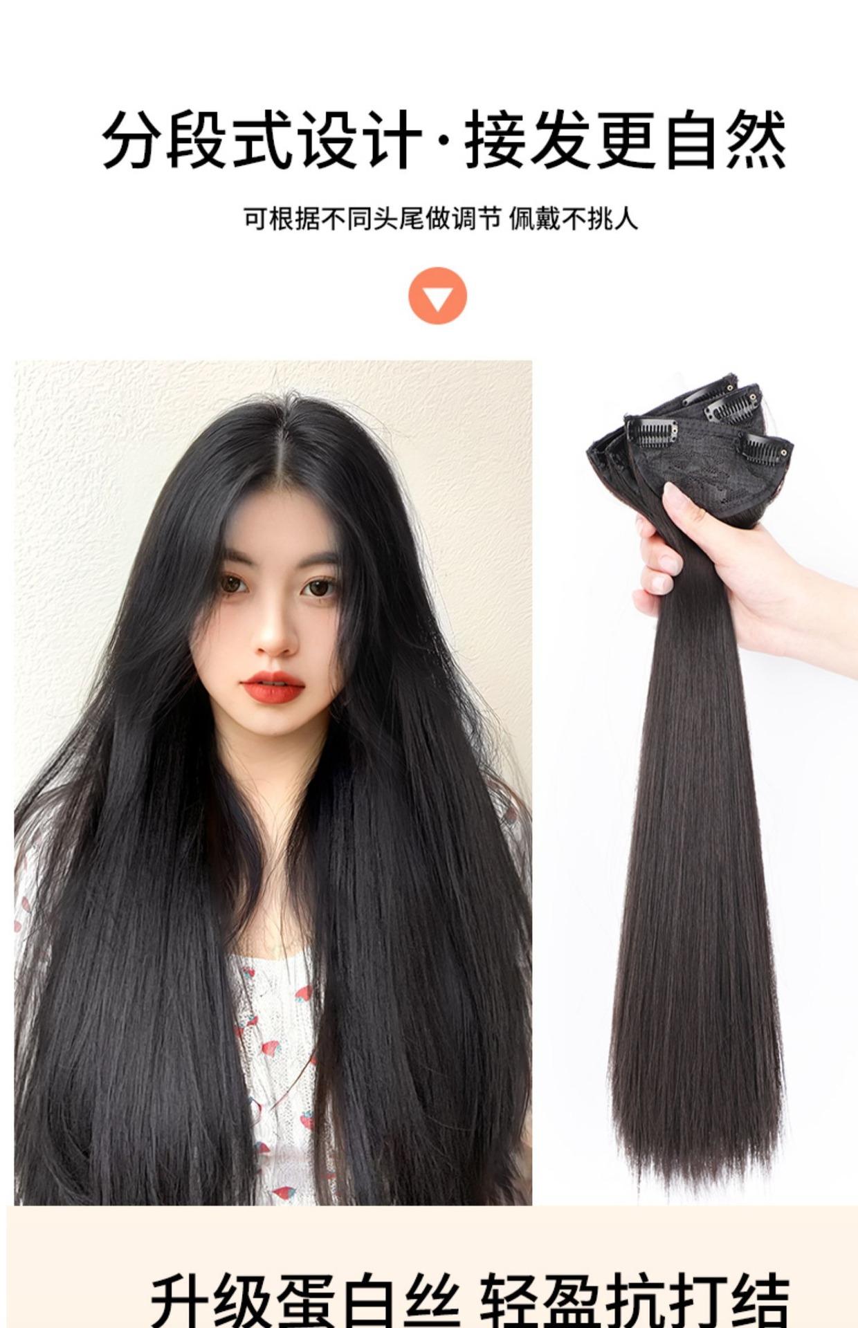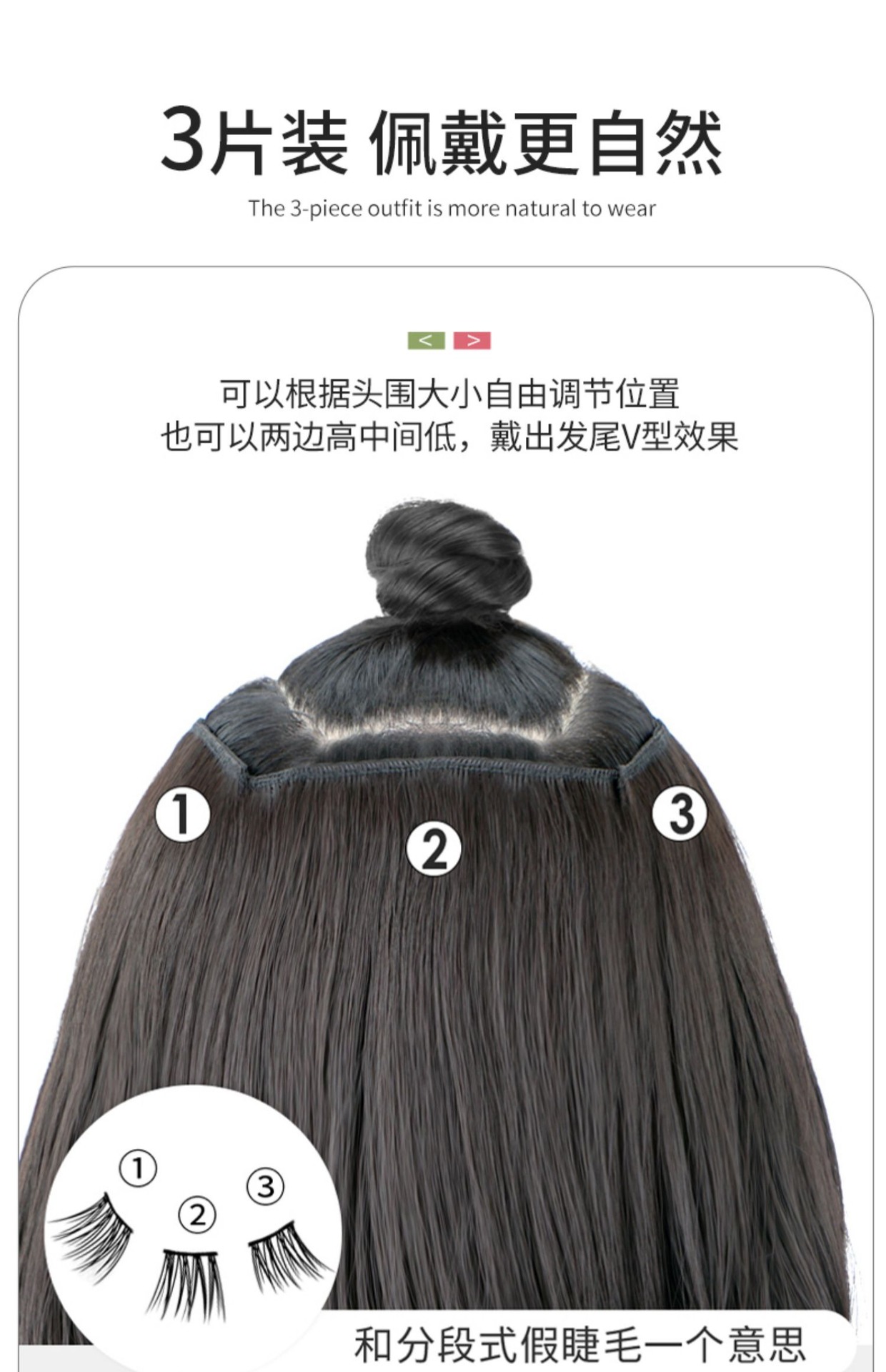 Peluca de las mujeres de pelo largo de tres piezas peluca invisible sin fisuras de simulación de pelo largo recto parche pelo aumento volumen esponjoso extensión del pelo pieza