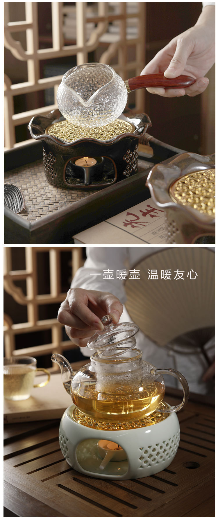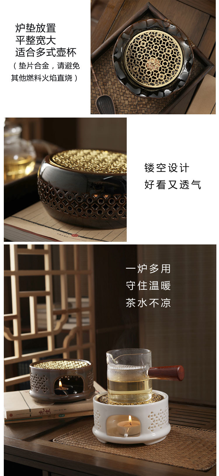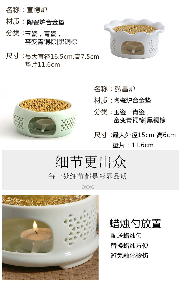 Calentador de té horno hueco temperatura de color estufa de té vela restaurante Hotel hogar aislamiento flor tetera estilo japonés calentador de té