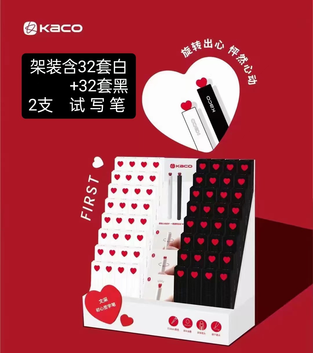 Kaco inicial corazón gel pluma giratoria núcleo creativo firma pluma amor regalo caja examen cepillo agua pluma 0,5