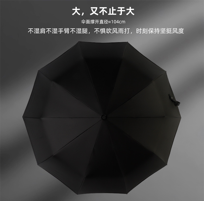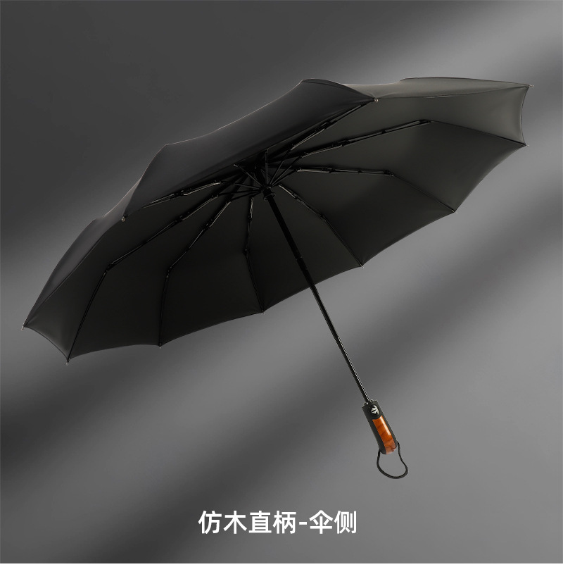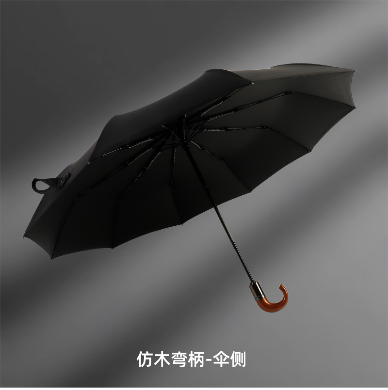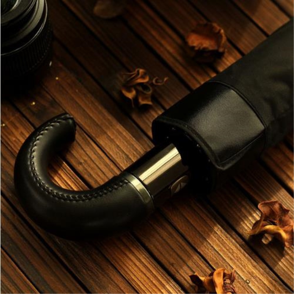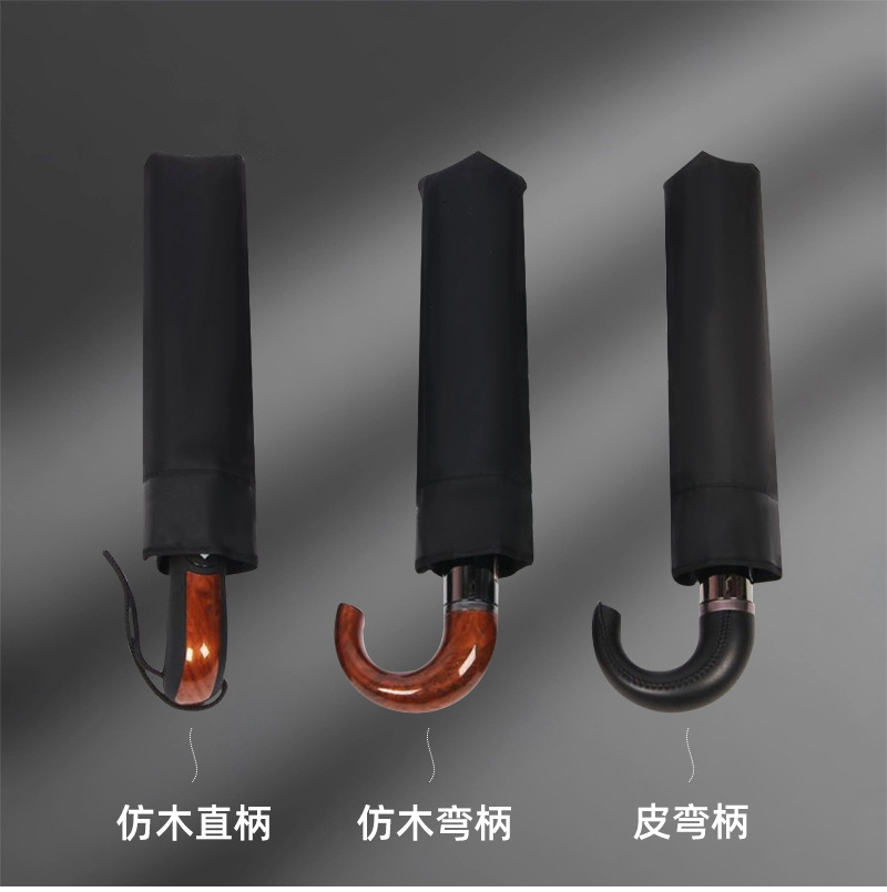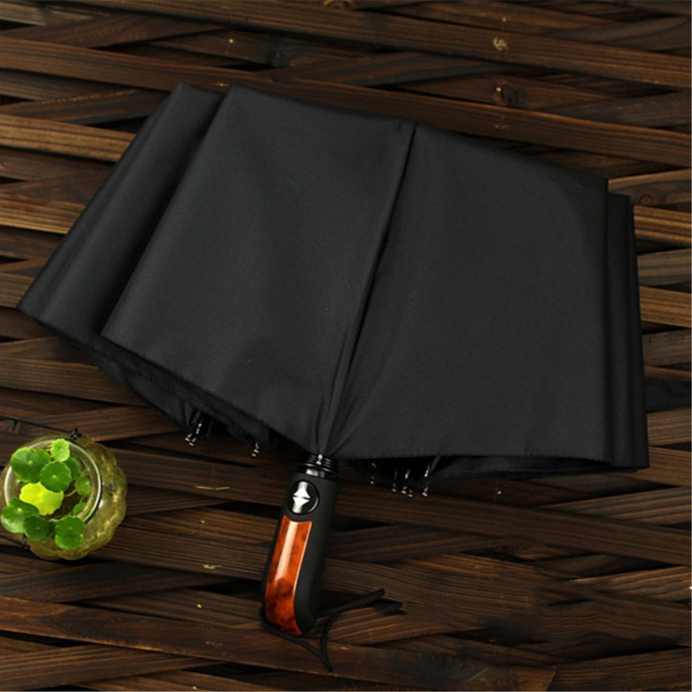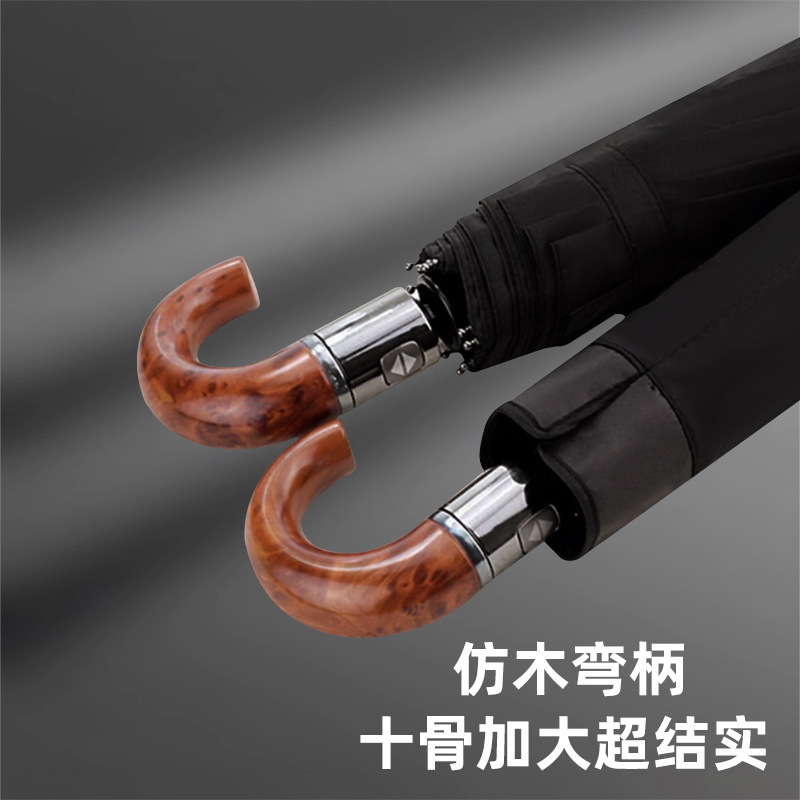 Paraguas de elefante automático triple de cuero de imitación mango de madera de diez huesos extra grandes hombres de negocios paraguas de tres pliegues automático negro puro