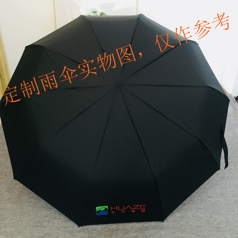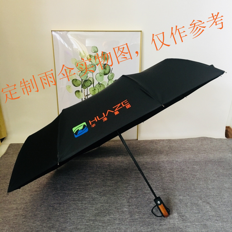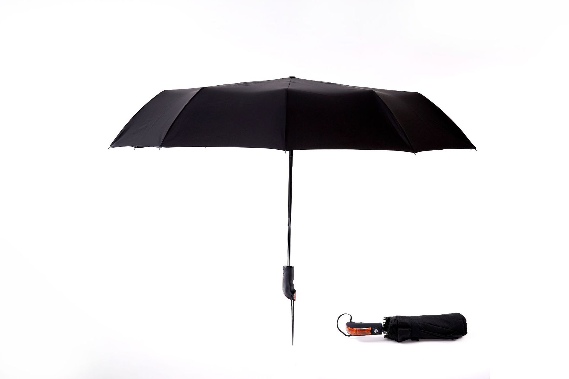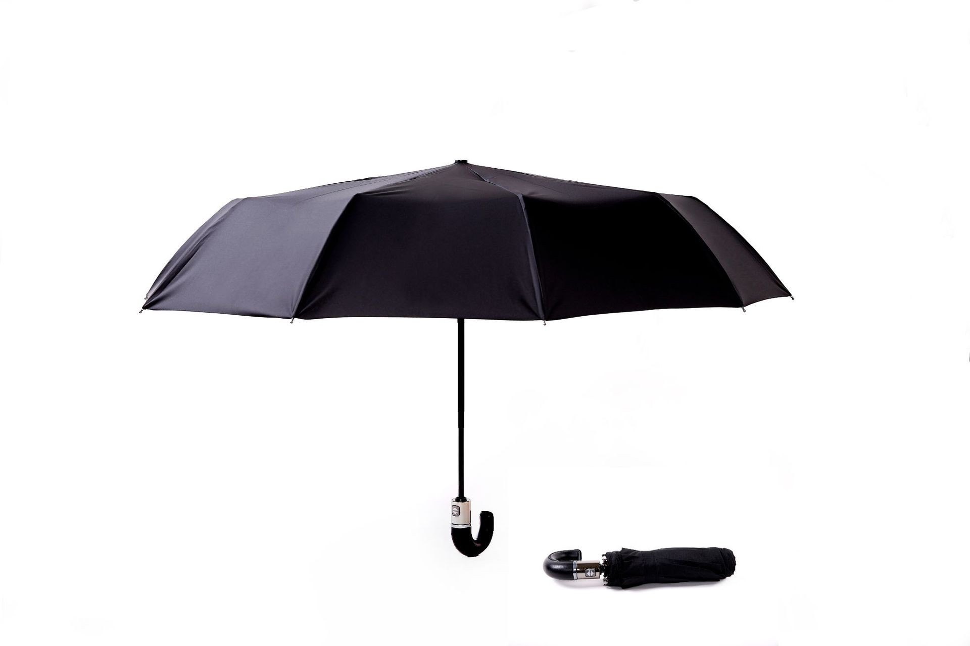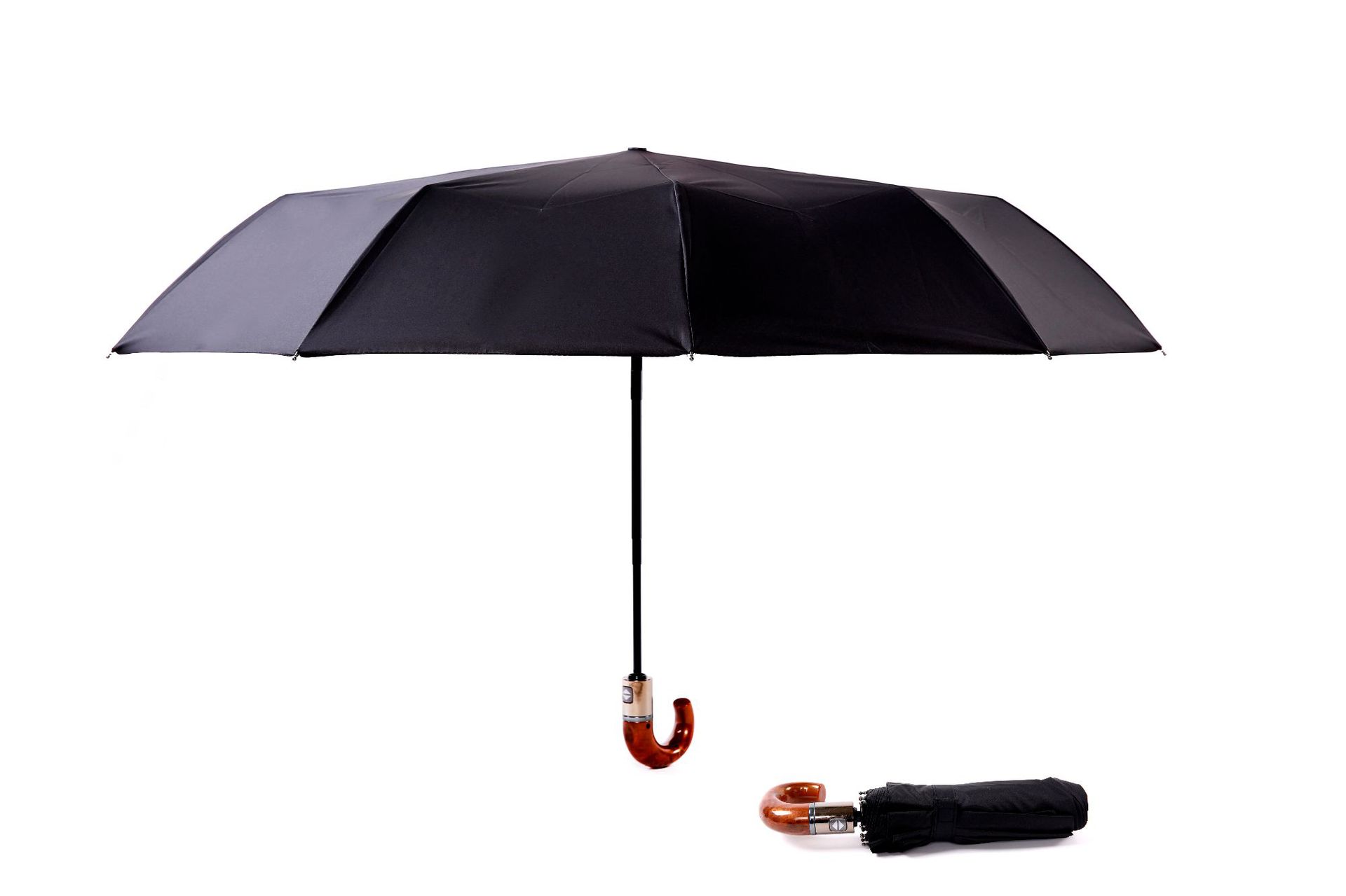 Paraguas de elefante automático triple de cuero de imitación mango de madera de diez huesos extra grandes hombres de negocios paraguas de tres pliegues automático negro puro