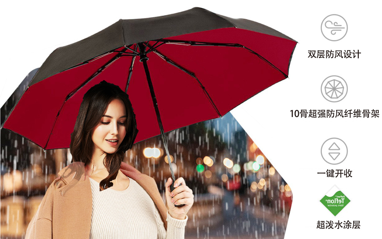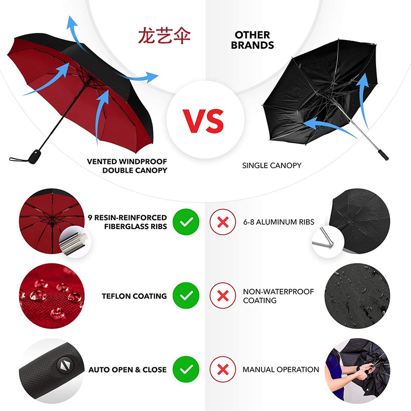 2024 Venta caliente Amazon popular doble plegable paraguas Publicidad automática tres plegable paraguas doble 10 hueso 3 veces