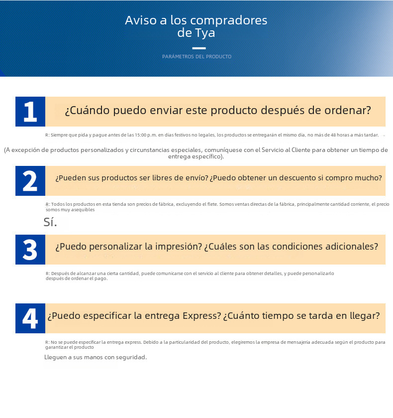 La cantidad indicada corresponde al pedido mínimo requerido por la fábrica; si necesitas ajustar la cantidad del producto, después de enviar el presupuesto, un gerente de compras hispanohablante se pondrá en contacto contigo para discutir los detalles del producto.