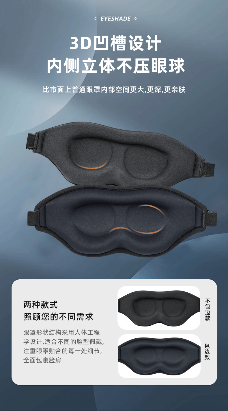 Venta caliente transfronteriza máscara de ojo en 3D negra sin presión máscara de ojo transpirable cuenca de ojo profunda máscara de ojo para dormir juego de cuatro piezas al por mayor