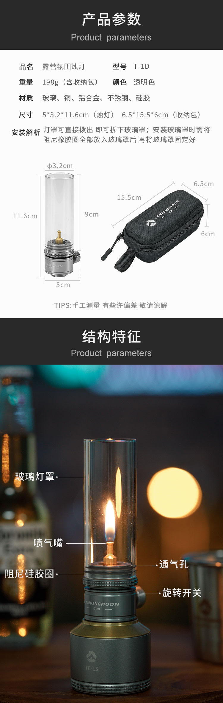 Coman T-1D plano de gas sin núcleo equipo al aire libre camping vela recta luz linterna de camping