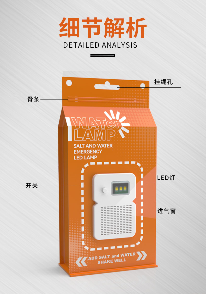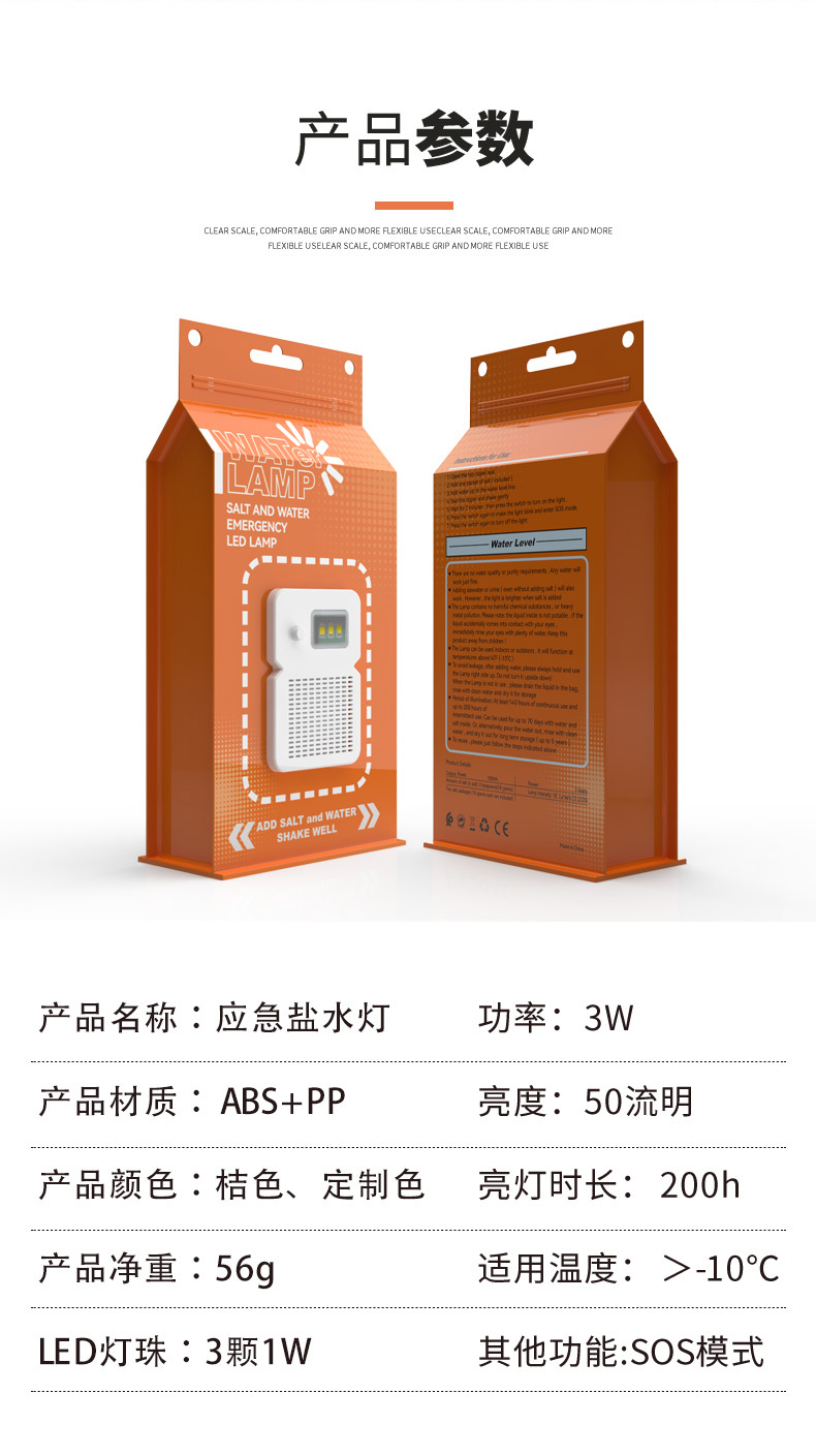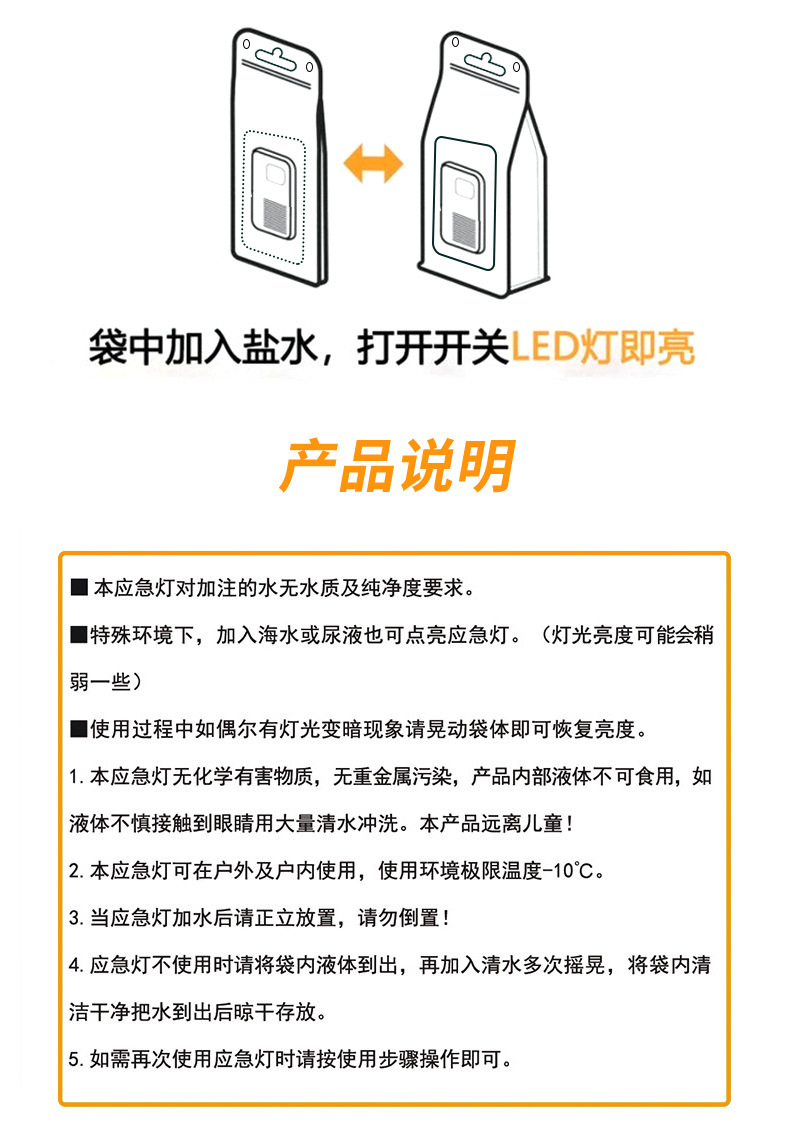 Luz de agua salada portátil camping LED de carga libre de emergencia bolsa de agua salada luz transfronteriza para acampar iluminación luz de advertencia al aire libre