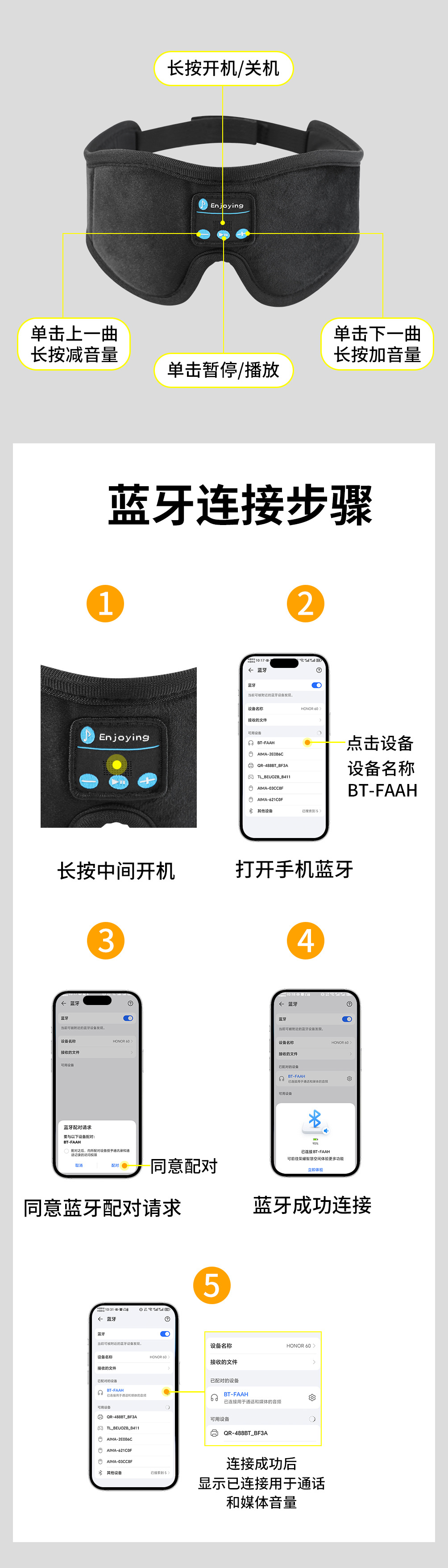 | Máscara de ojos Bluetooth | Máscara de ojos Bluetooth, máscara de ojos de música, máscara de ojos inalámbrica, sueño, viaje |