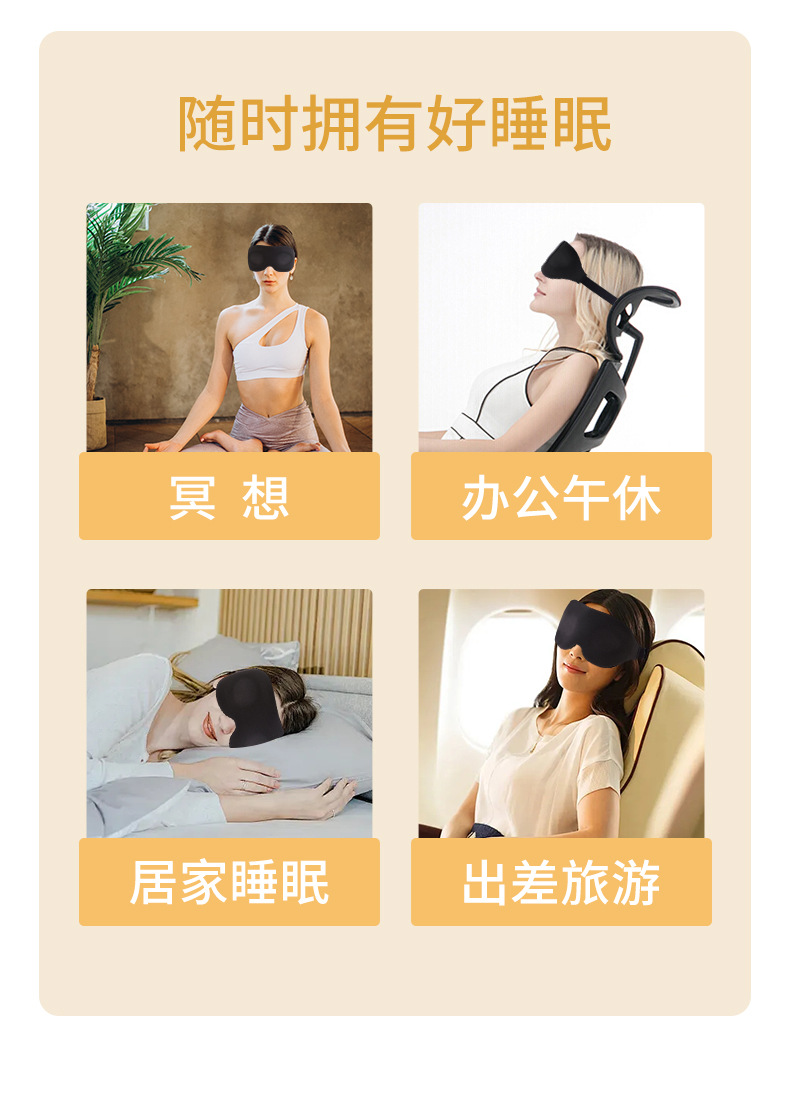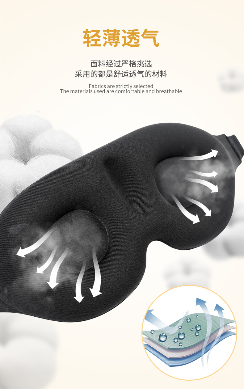 Amazon Venta caliente negro 3D dormir máscara de ojo sombreado transpirable espuma de memoria máscara de ojo de cuatro piezas en stock