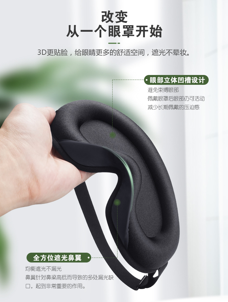 Máscara de ojos 3D sombreado máscara de ojo tridimensional espuma de memoria lenta recuperación transpirable doble Lycra viaje siesta máscara de ojo suministro de fábrica