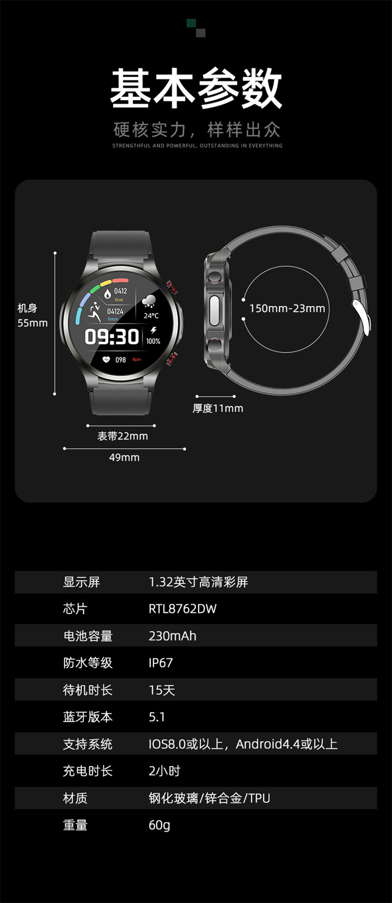 ECG PPG W11Pro reloj inteligente no invasivo de glucosa en sangre oxígeno en sangre Frecuencia Cardíaca ECG monitoreo del sueño ejercicio