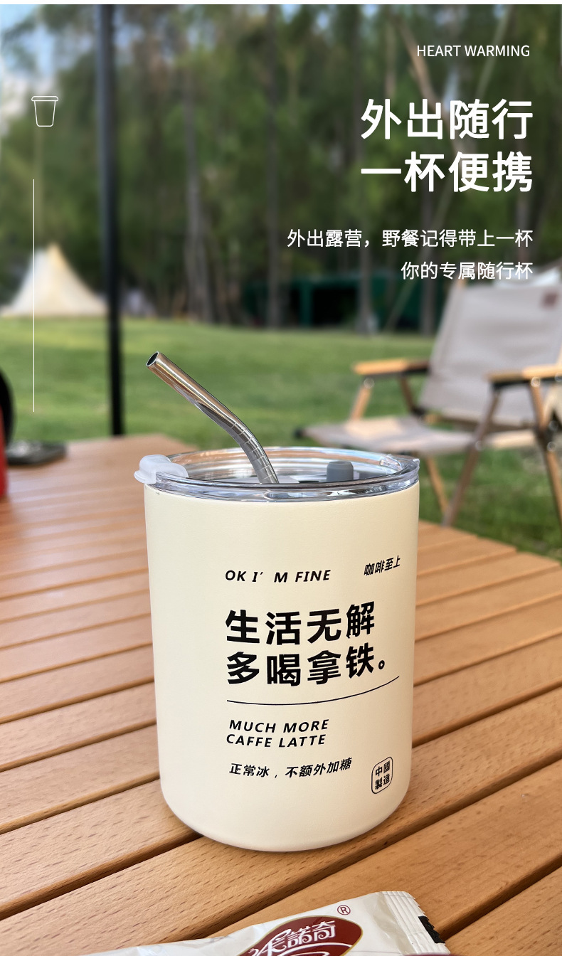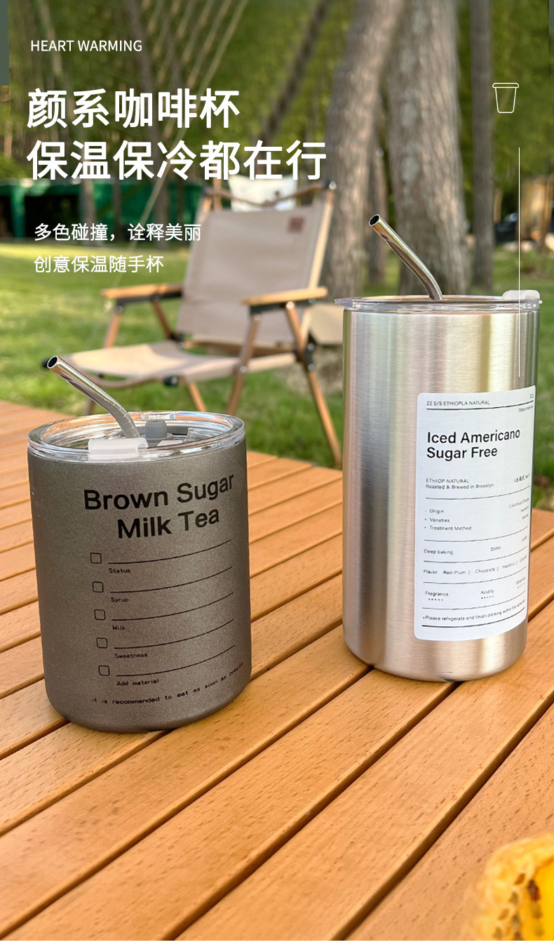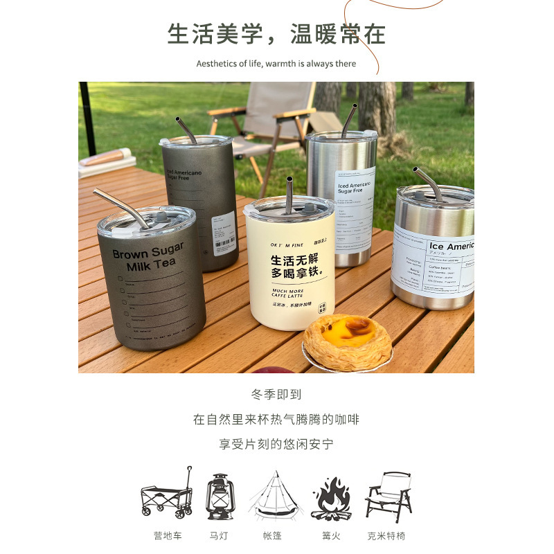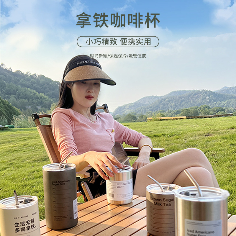 Taza de café de acero inoxidable Taza de café con leche americana Taza de vacío de paja de mantenimiento en frío Taza de agua portátil de café portátil estadounidense de hielo