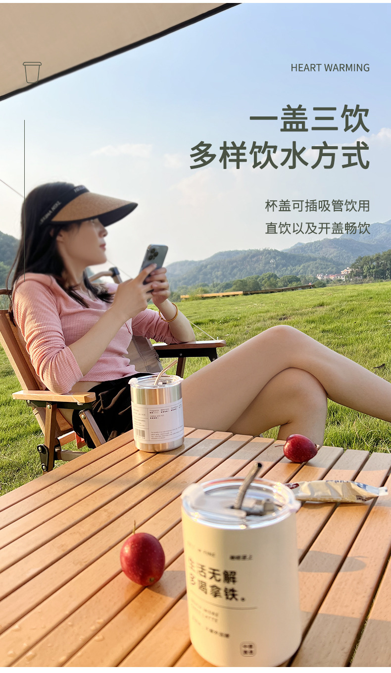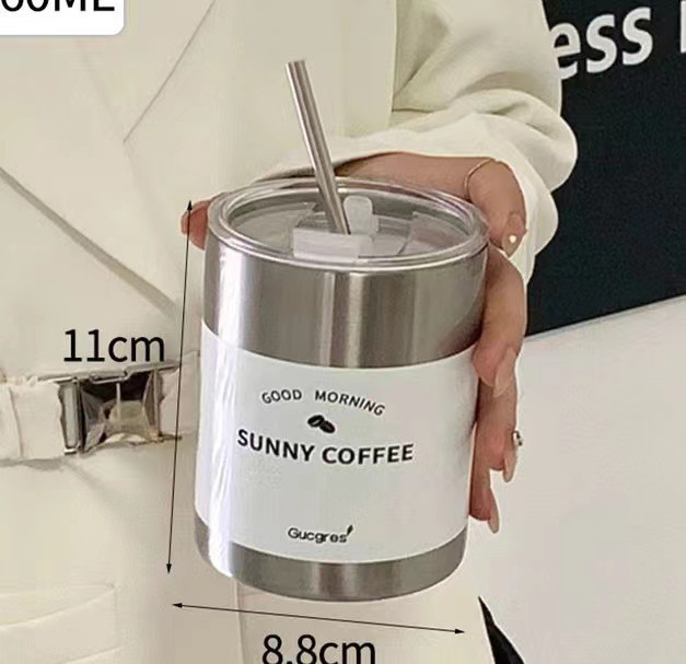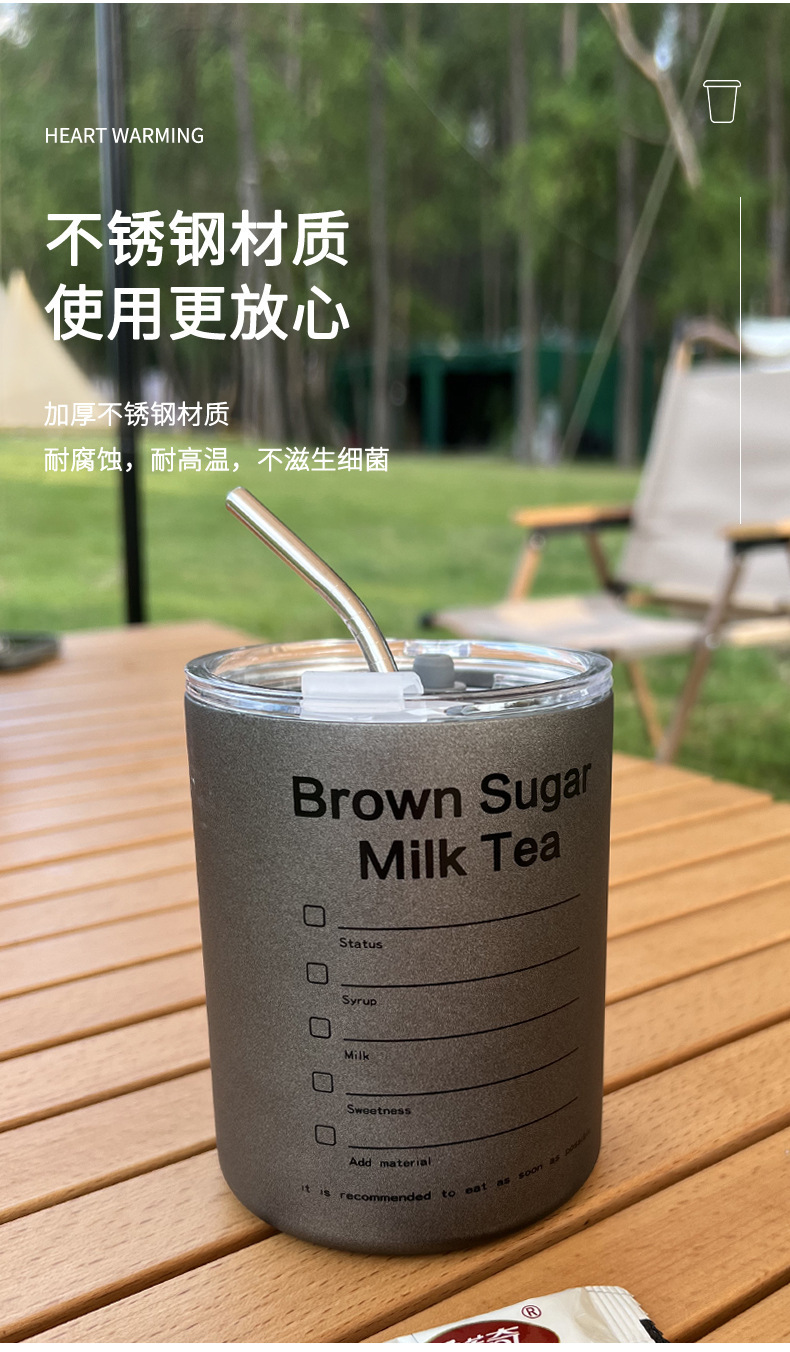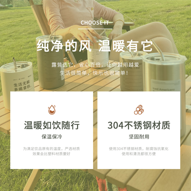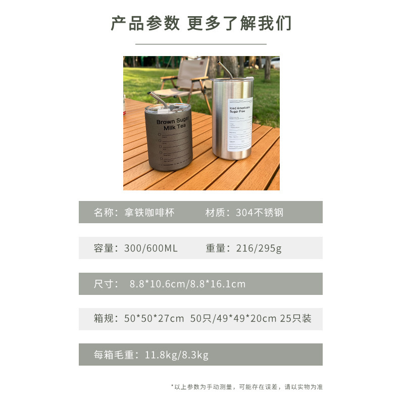 Taza de café de acero inoxidable Taza de café con leche americana Taza de vacío de paja de mantenimiento en frío Taza de agua portátil de café portátil estadounidense de hielo