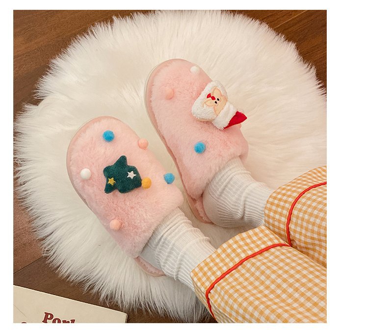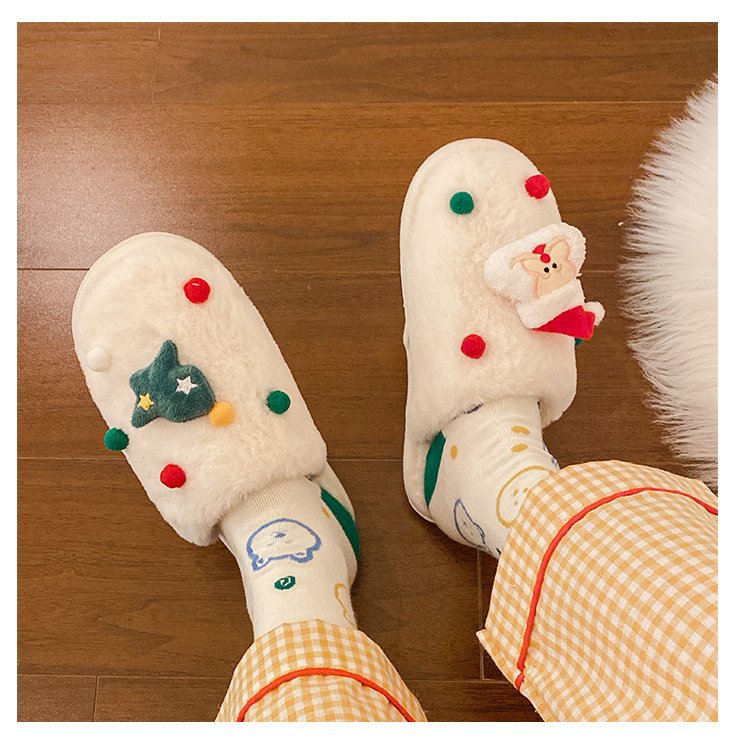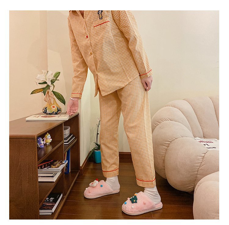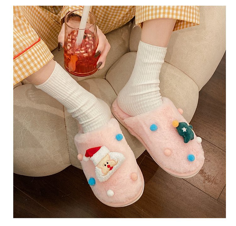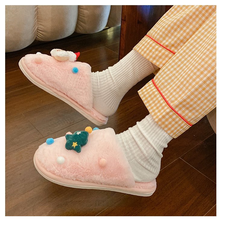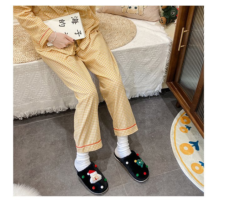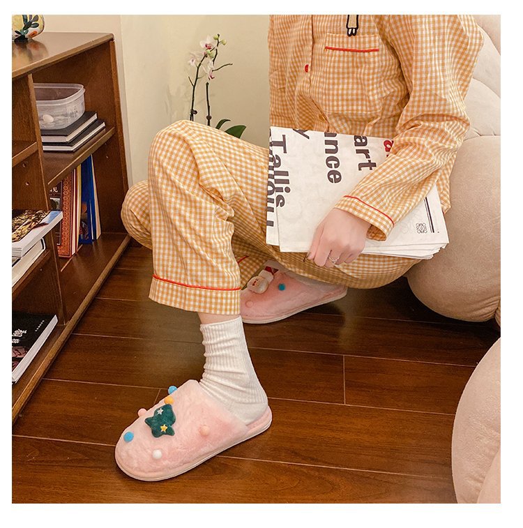 2024 Otoño e Invierno Nueva pareja Zapatillas de lana de fondo plano femenino Casa de dibujos animados forrada de lana cálido más tamaño Zapatillas de algodón