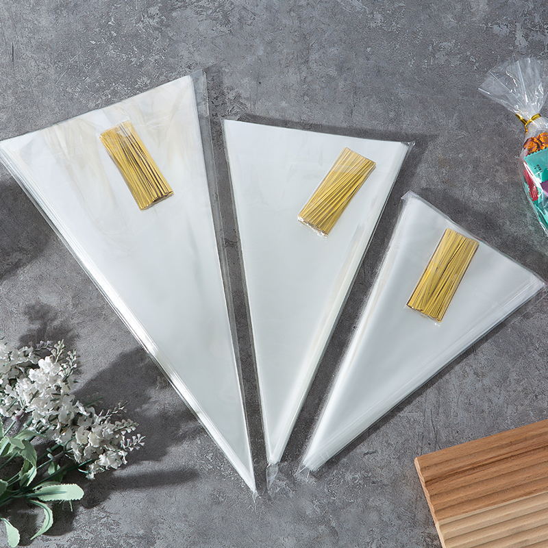 En stock bolsa de triángulo OPP bolsa de embalaje de caramelo de triángulo transparente bolsa de embalaje de palomitas de maíz de cono de helado 50