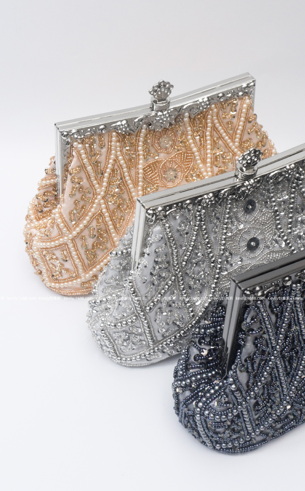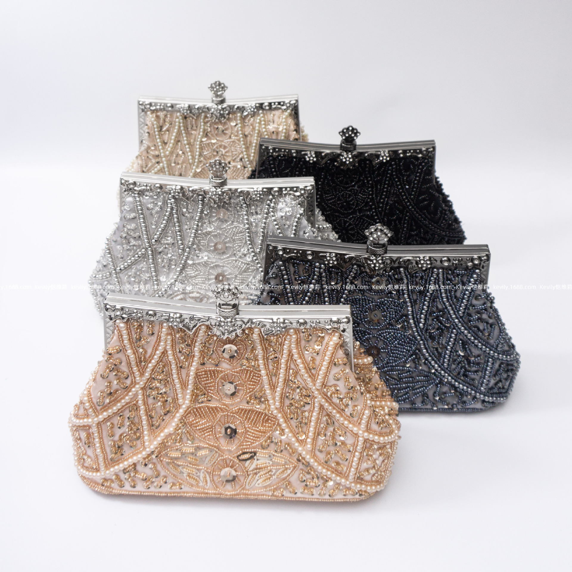 Kai Weili retro geométrico pesado hecho a mano con cuentas bolsa transfronteriza Bolso de mujer bolso de noche vestido de cheongsam bolso de noche con cuentas
