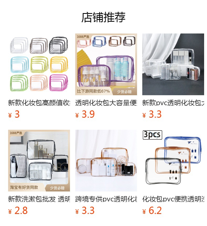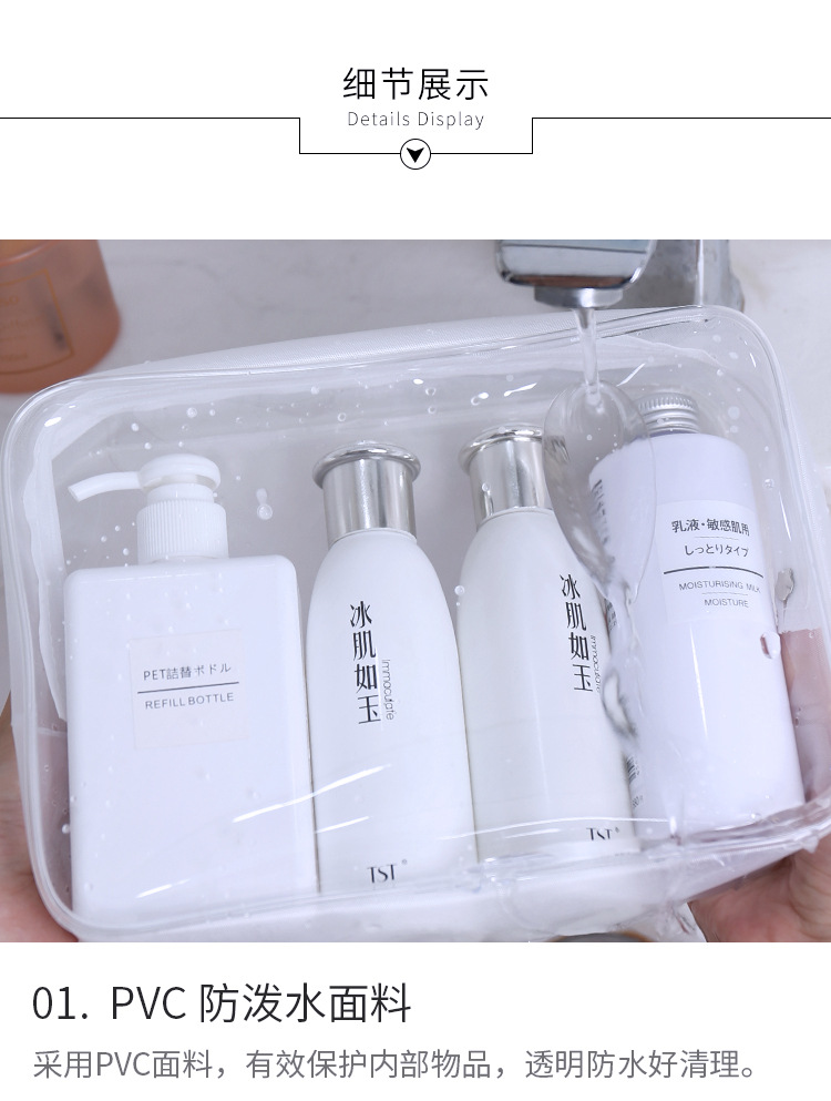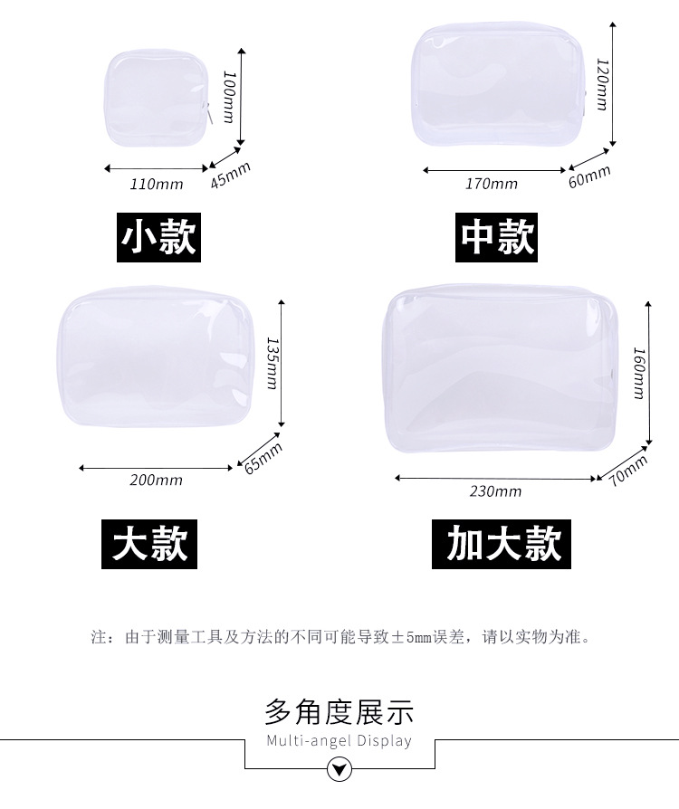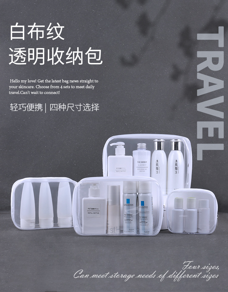 Bolsa de cosméticos de PVC transparente tamaño pequeño viaje impermeable al aire libre bolsa de almacenamiento de lavado de gran capacidad en stock al por mayor conjunto de cuatro piezas