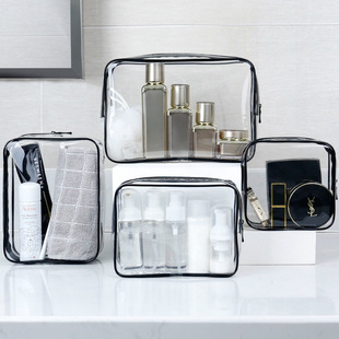 Bolso cosmético del PVC bolsa de almacenamiento de viaje cosmética transparente impermeable de gran capacidad en stock bolsa de lavado de cremallera de plástico
