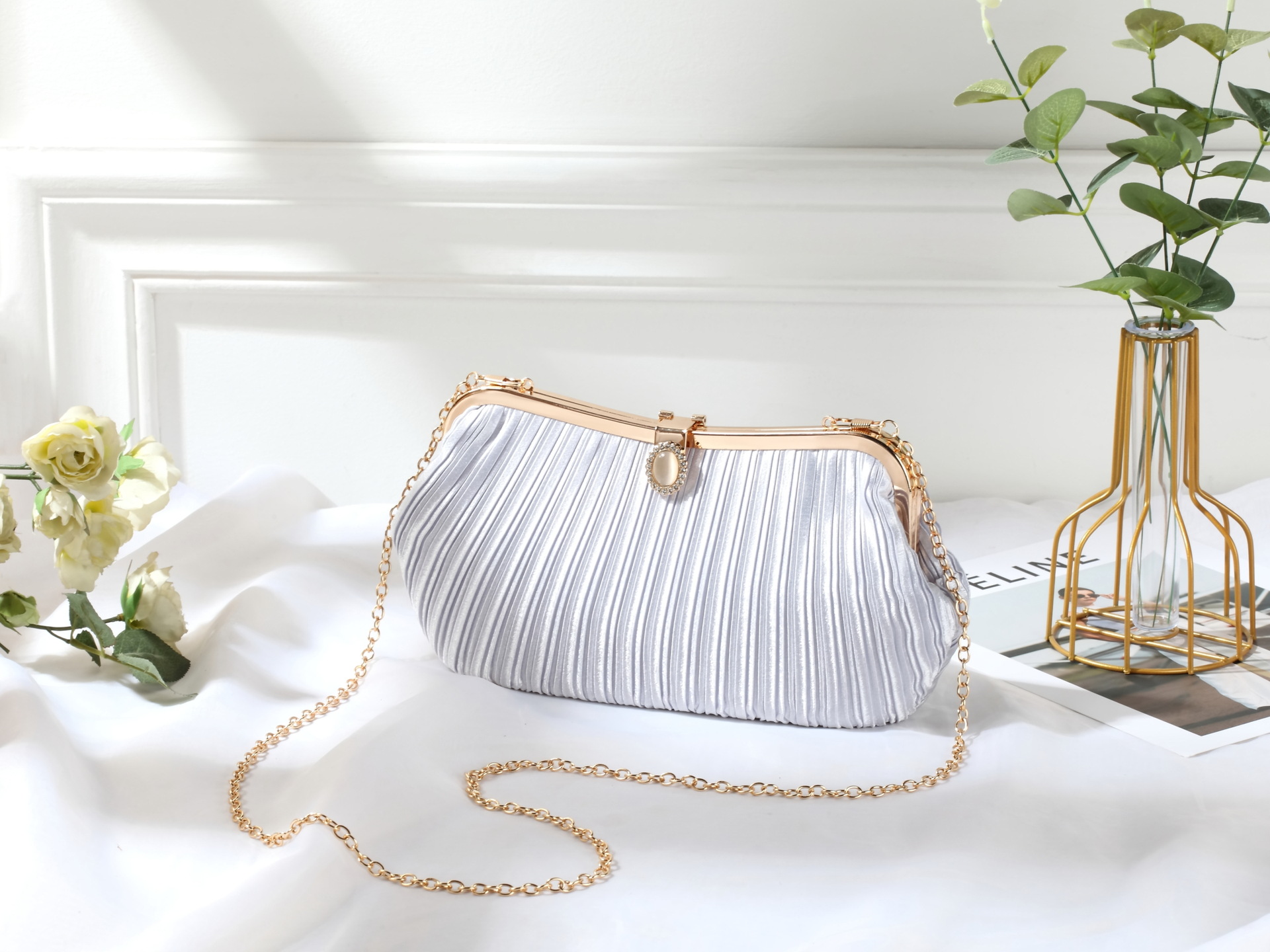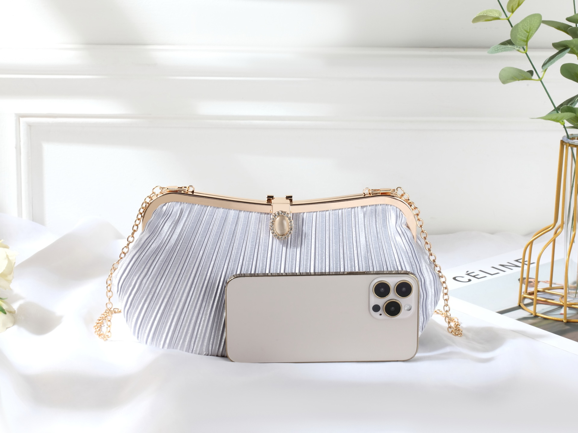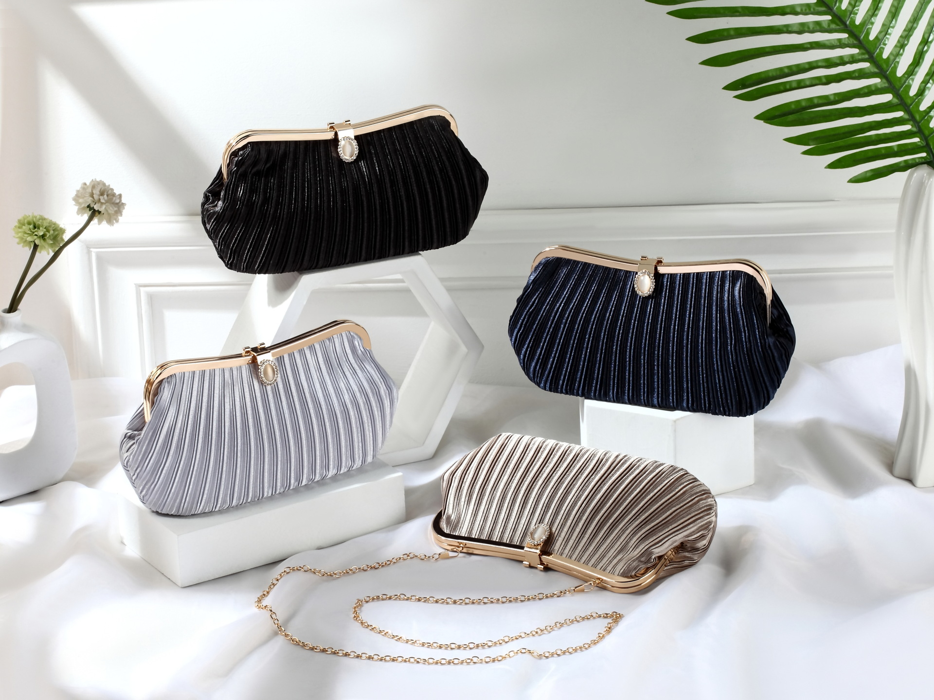 Comercio electrónico transfronterizo Estilo japonés Hardware plisado europeo y americano Bolsa de banquete Bolsa de vestir Bolsa de embrague Bolsa de noche Bolsa de fiesta